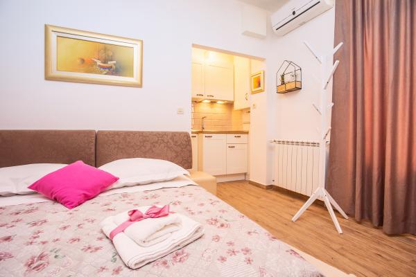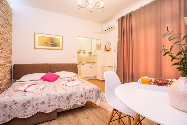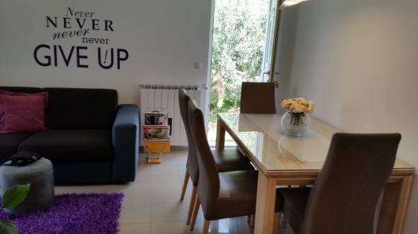 Novo stanovanje dobro opremljena v mirni okolici Splita. Apartma se nahaja 2 minuti hoje od centra mesta in 5 minut od plaže in se nahaja tik ob športnem objektu. Apartma se nahaja v mirni ulici v prvem nadstropju stanovanjske hiše. Vključuje: klimatsko napravo; TV s 900 programi; wi fi internet; pomivalni stroj, pralni stroj, in popolnoma opremljeno kuhinjo. Apartma ima eno spalnico z zakonsko krevettom; dnevna soba s kavčem, 1 kopalnico in balkon z mizo in stoli, ter garažo za avto. Doamćin je na voljo za vse Coyne pomoč in nasvet. Mi smo veseli vsakega vašega prihoda.