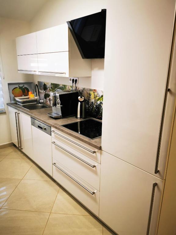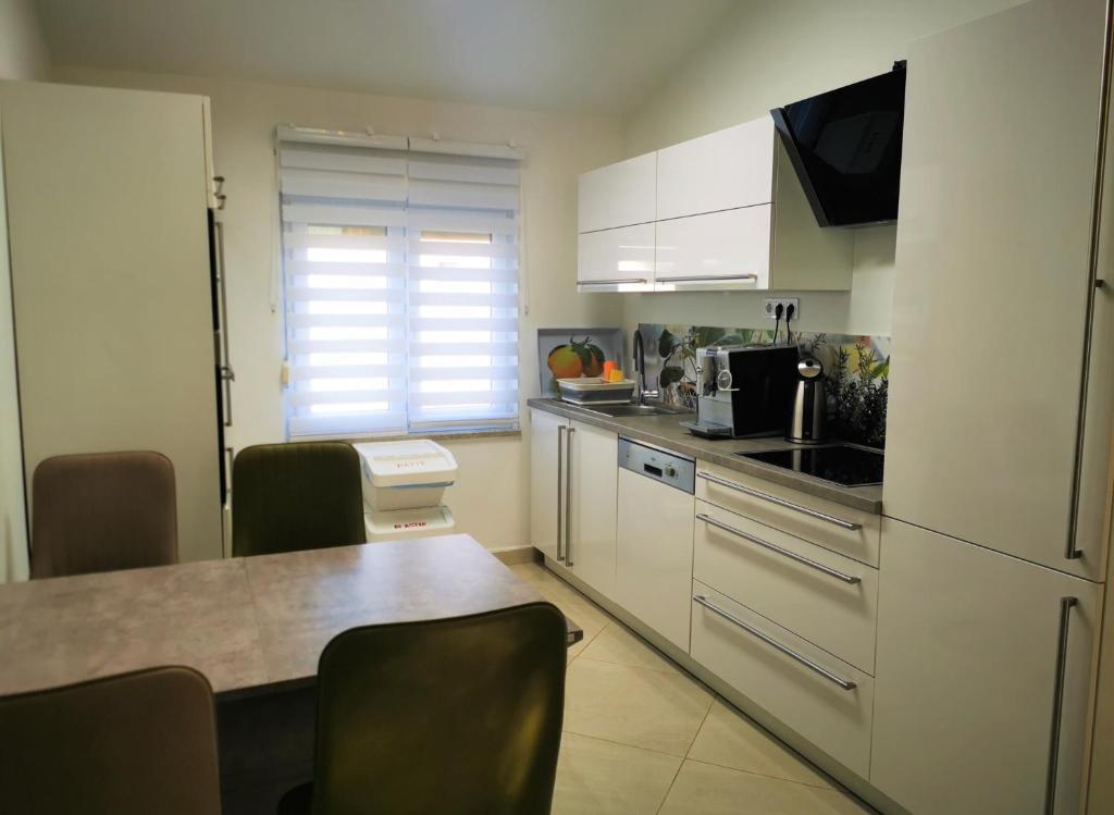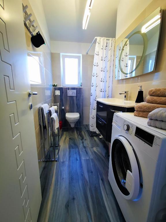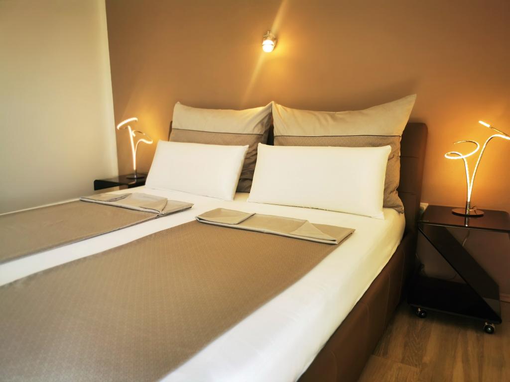 Naša štiričlanska družina je dopustovala v Petrovem in Ljubicinem apartmaju od 30.6.-15.7. Luksuzno, udobno, prostorno, svetlo, dobro pohištvo in v celoti opremljeno z WE napravami in aparati stanovanje. Kristalno čisto. Obstajajo zelo udobne postelje, veliko prostora za sprostitev in harmonijo. Zelo se zahvaljujemo čudovitima lastnikoma Petru in Ljubici za gostoljubje, vrhunsko udobje in lepoto okolice. Restavracija na nasprotni strani ulice je ves dan tiha, od popoldneva pa ponuja okusno pico. Parkirno mesto je dovolj veliko za SUV polne velikosti.