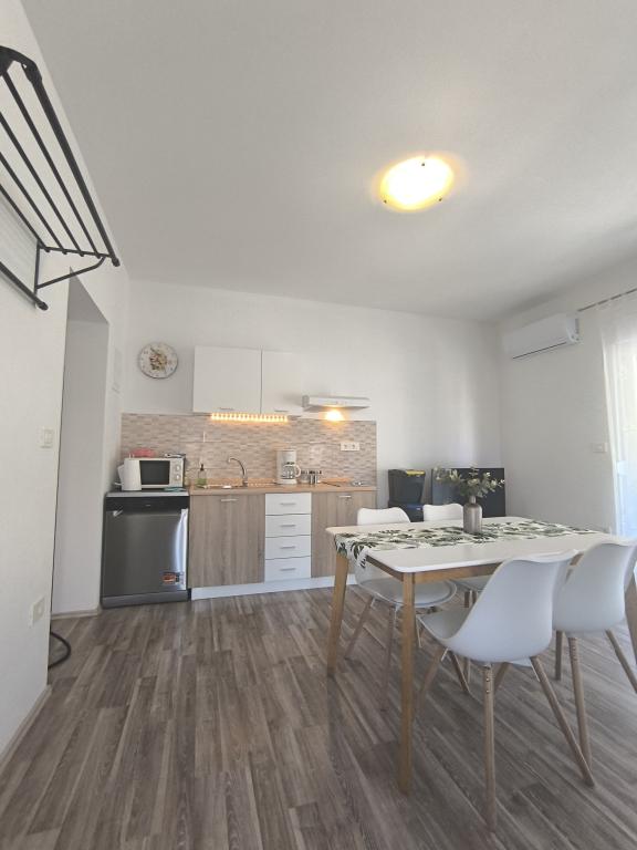 Imeli smo fantastične počitnice v čudovitem, svetlem in modernem apartmaju. Komunikacija je bila odlična, čeprav ne govorim hrvaško ali popolno angleško! Topel sprejem, hladilnik, založen s pijačo in sadjem, ter sadje z vrta za zajtrk naslednji dan. Kaj več bi si lahko želeli v smislu gostoljubnosti?! Vedno na voljo za odgovore na vprašanja, posteljnino (brisače, prti itd.) pa so celo prinesli za menjavo. Hvala za čudovito preživet čas in okusne olive za poslovilno poslastico. Zagotovo se bomo vrnili!