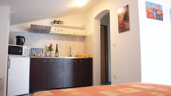 Ljudje želenega miru bodo zagotovo počivali v teh apartmajih, ki imajo vse, kar potrebujete za počitnice. Dobrota gospodinj in njene družine je odlična. Pogled na teraso je lep. Vse je čisto in urejeno, možnost uporabe žara. Dovoljeno je bivanje in hišne ljubljenčke, kar je hvalevredno. Morje je blizu apartmaja.