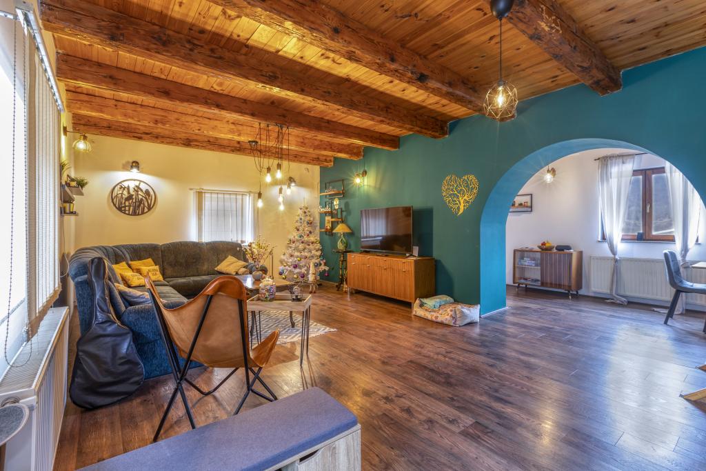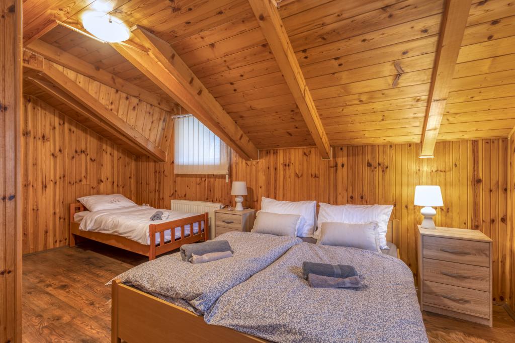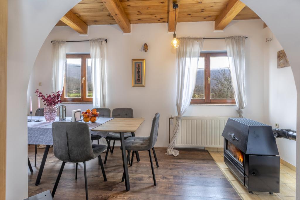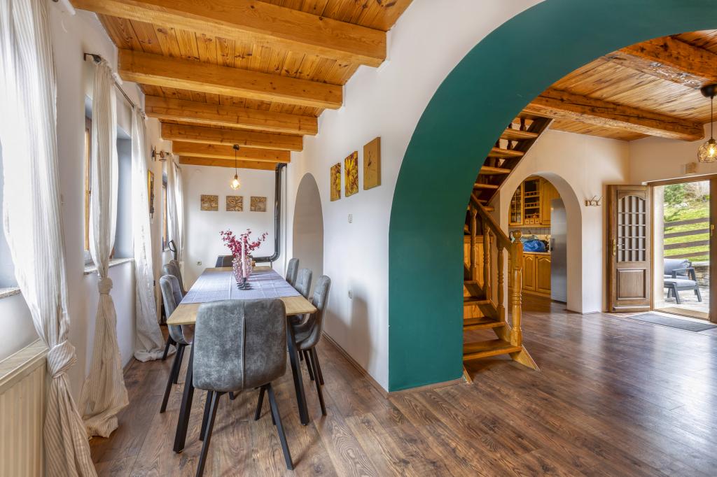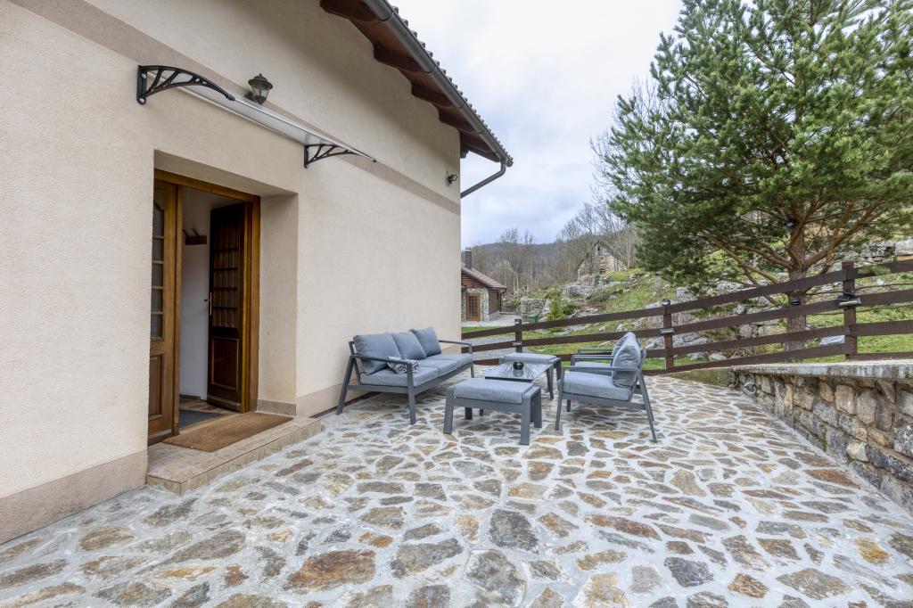 Počitniška hiša se nahaja v naravnem parku Velebit, le 35 minut od morja in 1 uro od nacionalnega parka Plitvička jezera. Posestvo je na osami, z idiličnim pogledom na gozd in Velebit. Na posestvu so 3 zgradbe. Hiša v 3 etažah, garaža in majhna lesena hiška z velikim kaminom in leseno mizo. V hiši boste doživeli prijetno vzdušje s številnimi lesenimi elementi in udobnim pohištvom. V pritličju je velika dnevna soba, kuhinja in kopalnica. Lepe lesene stopnice vas popeljejo v prvo nadstropje, kjer so 4 zelo udobne sobe in kopalnica. V kleti je igralnica z biljardom, namiznim nogometom in pikadom. Notranjost celotne hiše je skrbno urejena, z vsem, kar potrebujete za maksimalno udobje in sproščeno bivanje.