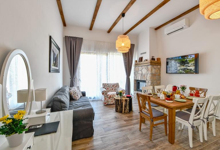 V neokrnjeni naravi, tako rekoč v samem osrčju Like, v treh »starih« liških hišah, od katerih ima vsaka svojo zgodbo, ponujamo tradicionalne elemente opreme s pridihom zgodovine in antike, a tudi luksuza in udobja, ki sta tako danes nujen za počitek in beg od napornega vsakdana. Sama opremljenost objektov je nekaj, na kar smo izjemno ponosni in vsebuje vse potrebno, da bo dopust popoln in nepozaben. Tu mislimo predvsem na vinsko klet, konobo, kjer pripravljajo obroke za goste, notranji, pokriti, ogrevan bazen, savno, centralno ogrevanje, kombi za transferje, možnost najema terenskih vozil, vaš lastno pokrito parkirišče, otroški park, vrtna garnitura, pa tudi TV, internet, klimatske naprave, pralni in sušilni stroji, pomivalni stroji, žar, toplozračna peč, sušilniki za lase, pa tudi izvir pitne vode, ki sega v do časa avstro-ogrske monarhije