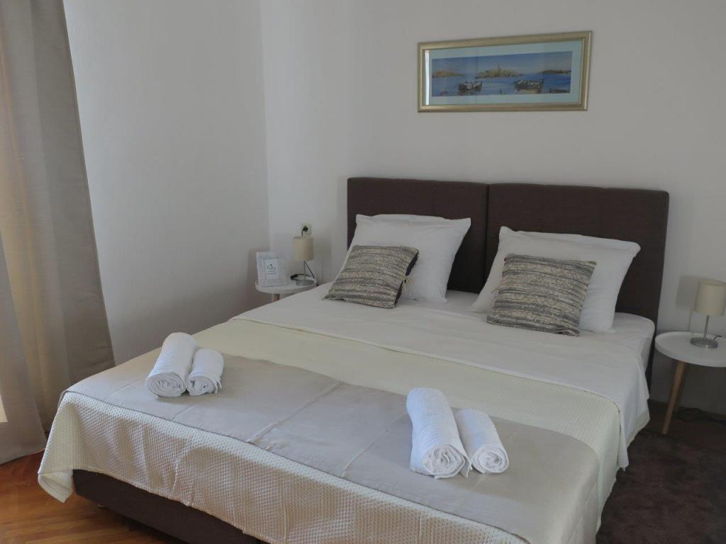 Apartma 100 m2 za 8 1 oseb. Apartma ima tri ločene spalnice (eno dvoposteljno in dve troposteljni), dve kopalnici, kuhinjo z jedilnico in dva balkona s čudovitim pogledom na morje in okolico. Vse sobe imajo klimatsko napravo. Gostje lahko za obedovanje uporabljajo tudi žar z mizo in klopmi. Parkirišče za goste je brezplačno.