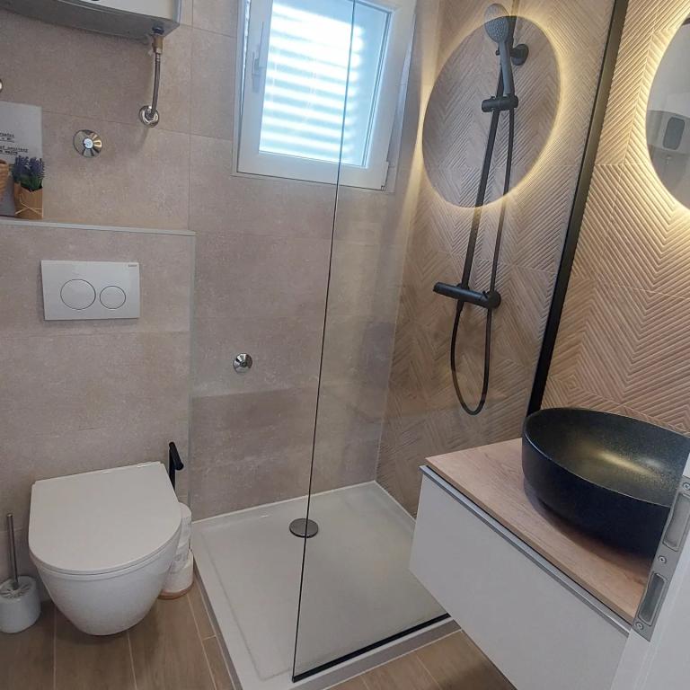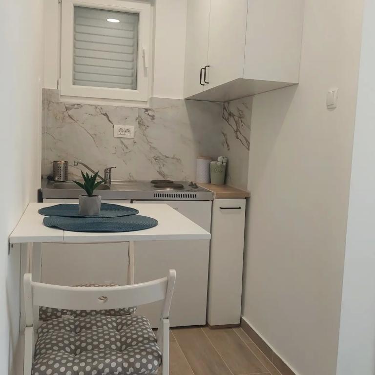 Zelo lep, prijeten in okusno opremljen studio. Komunikacija z najemodajalko je bila zelo hitra in korektna. Apartmajska hiša se nahaja nekaj korakov od plaže, na dvorišču je čudovit prostor za sedenje, kjer smo si na žaru spekli odlično ribo, ki smo jo kupili v lokalni ribarnici. Tukaj nam je bilo zelo všeč in se bomo zagotovo vrnili. Hvala.