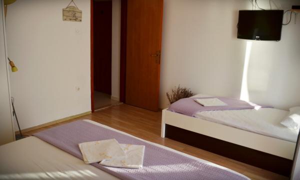 Turistična taksa je vključena v ceno. Dokument o potrditvi rezervacije ob rezervacijiNudimo tudi opremo za otroke, če jo gost potrebuje. Na voljo je na zahtevo (prenosna otroška posteljica). Senčniki po apartmaju. Storitve pranja perila na zahtevo. Dodatno čiščenje na zahtevo. Namestitvene enote imajo kuhinjo, spalnice, kopalnico in vso ostalo opremo, ki jo gost potrebuje. Ob objektu imamo na voljo dve parkirni mesti, ostali dve mesti sta oddaljeni 2 minuti vožnje z avtom, 5 minut peš - urnik parkiranja določi lastnik glede na rezervacijo. Na dvorišču je letna kuhinja, žar, prostor za bivanje, oprema za obešanje perila, prostor za shranjevanje plažne opreme, koles, skuterjev. Zunanji tuš je nastavljen izključno za uporabo ob prihodu