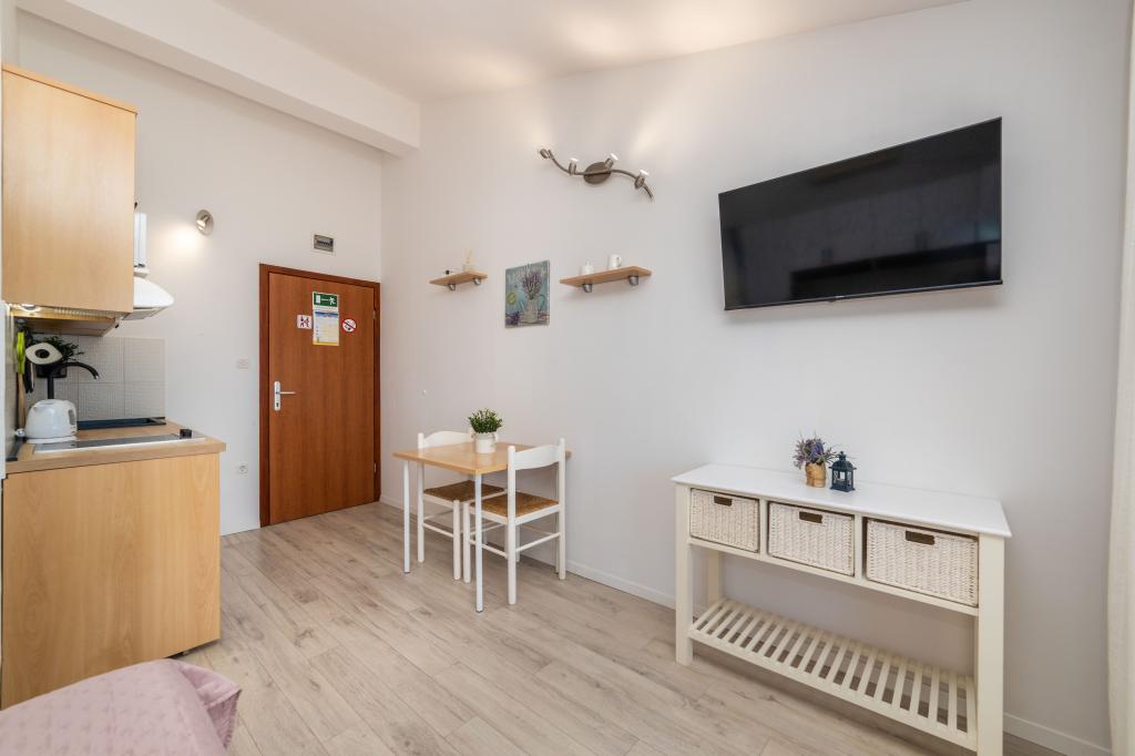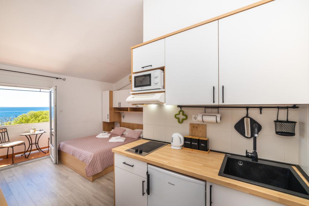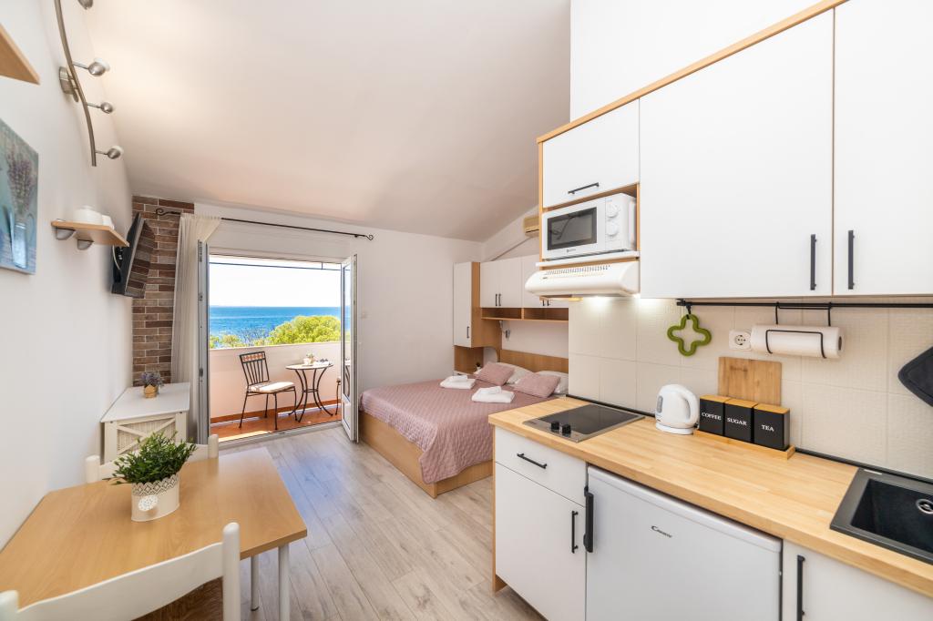 Z bivanjem v garsonjeri smo zelo zadovoljni. Apartma je nov, lepo okrašen in brezhibno čist. Lokacija je odlična. Apartma ima zaseben balkon s čudovitim pogledom na morje. Zagotovljeno nam je bilo brezplačno parkiranje. Lastnik je zelo prijazen. Naša priporočila za te apartmaje.