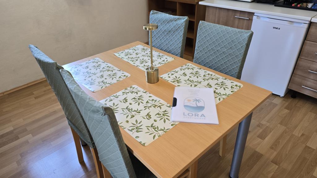 Apartmaji Lora gostom ponujajo vrsto dodatnih ugodnosti in opreme, ki so vključene v ceno bivanja, z namenom maksimalnega udobja in brezskrbnih počitnic. Vsak apartma je popolnoma opremljen in vključuje aparat za kavo z dobrodošlico, grelnik vode, opekač kruha, ledomat, sef, močan sušilnik za lase z nastavki, digitalno tehtnico, likalnik, parni likalnik, likalno desko in brezžični sesalnik. V objektu so gostom na voljo dve kolesi, dve SUP deski (stoječe deske za veslanje), zložljiv voziček za na plažo in dodatna oprema za bivanje ob morju. Gostom pomagamo pri organizaciji izletov v okolici, najemu čolna (z ali brez skiperja), prevozih in rezervaciji restavracij. Možno je pridobiti priporočila za plaže, sprehode, kolesarske poti in lokalne znamenitosti. Na zahtevo je mogoče zagotoviti pristne lokalne izdelke, kot so vino, olivno olje, med in fige, neposredno od zaupanja vrednih lokalnih proizvajalcev. Za vse goste je na voljo hiter in stabilen internet Starlink, gostitelji pa so na voljo ves čas bivanja.