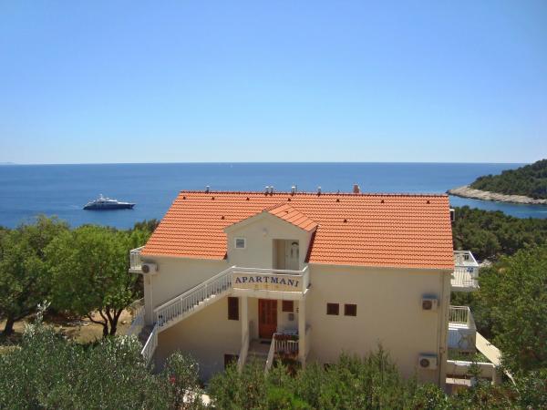 Apartrman se nahaja na griču, na mirni lokaciji, le nekaj minut hoje od morja in plaže. Milna je majhno naselje se nahaja na južni strani otoka in približno 5 km od središča istoimenskem mestu.