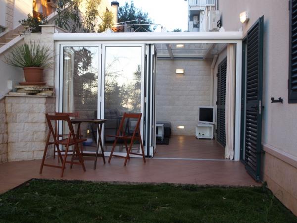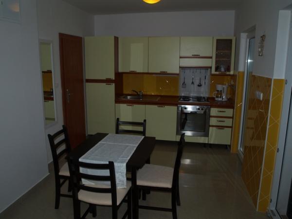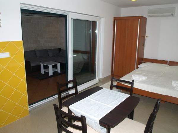 Popolnoma opremljen studio apartma v pritličju, z delnim pogledom na morje. 5 minut hoje od najlepše plaže - Pokonji Arr. Studio - Apartma v enem prostoru ima spalni prostor (zakonska postelja), kuhinjo in jedilno mizo s štirimi stoli. V drugi sobi je kotiček sedenje s TV. Kuhinja vključuje štedilnik, hladilnik, aparat za kavo, mikrovalovna pečica, jedilni pribor, itd .. Kopalnica z WC-jem in tušem. V ospredju je majhen ne 7m2 terasa z mizo in stoli.