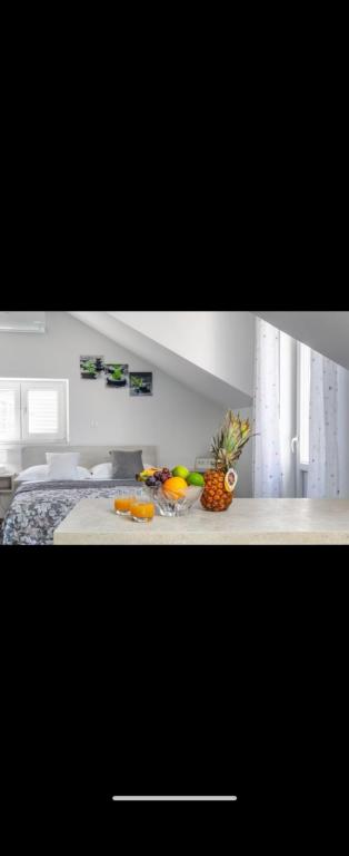 Elegantno opremljeni studio apartmaji, ki se nahajajo v samem središču mesta Hvar, ponujajo popolno kombinacijo udobja in odlične lokacije. Apartmaji so svetli in moderni, opremljeni z udobno zakonsko posteljo (160 × 200), popolnoma opremljenimi kuhinjskimi nišami z vsemi potrebnimi dodatki (hladilnik z zamrzovalnikom, grelnik vode, opekač kruha, kuhalne plošče, mikrovalovna pečica, pomivalni stroj), kopalnicami s tušem, klimatsko napravo in obema z zasebnima terasama (zunanja miza, stoli in ležalniki), ki ponujajo očarljiv razgled na staro mestno jedro in čudovito hvarsko pristanišče. Doživite najboljše od Hvara dobesedno pred vašim pragom: očarljive kavarne, vrhunske restavracije, prijetni zajtrkovalnice, lokalni butiki in trgovine s spominki. Glavni mestni trg s katedralo sv. Štefana in najstarejšim javnim gledališčem v Evropi sta oddaljena le 3 minute hoje od vaših vrat. Bivali boste v samem središču Hvara, a hkrati v popolnoma odmaknjeni ulici, ki zagotavlja miren in prijeten nočni počitek.