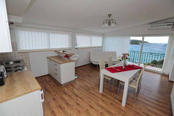 Turistična taksa nije vključena v ceno.Naša storitev temelji na posteljo in zajtrk. Samopostrežni zajtrk je na voljo vsako jutro v jedilnici in na terasi v pritličju. Cena vključuje tudi parkirišče, uporaba stoli in senčniki na plaži in wi-fi (razmisliti, kako je cel otok ni stabilno mobilni signal in signala omrežja Wi-Fi ima lahko prekinitve in slabši sprejem). Smo sposobni pomagati gostom pri organizaciji ekskurzije, transferji, najem plovila ali vozila. Tudi v primeru bivanja brez lastnega prevoza na gostje imajo možnost avtobusnega prevoza (časovni razpored) iz bližnjega kampa Vira in taksi prevoz.