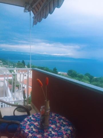 Studio apartma, gladka in popolnoma opremljeno za 2 osebi ali 2 1. A panoramski pogled na celoten Kvarner, Cres in Krk. Parkirišče pred zasebnega gradbenega brezplačno. Stanovanje ima lasten vhod. in imajo svojo zasebnost na terasi. Zaželeno je, da za mlade, saj se nahaja v 4. nadstropju stavbe brez dvigala. Le 5 minut vožnje z avtomobilom do glavne plaže v Ičići.