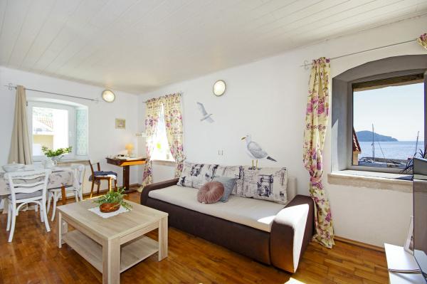Udobno smo bivali tri osebe v studiu 1 s pogledom na morje. Je zelo blizu plaže in ima čudovito teraso s pergolo.