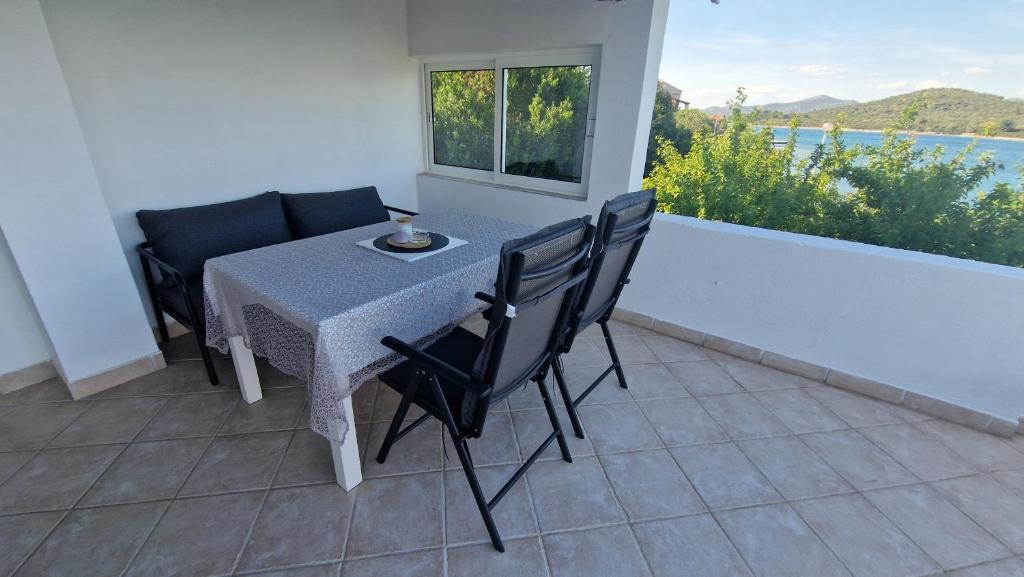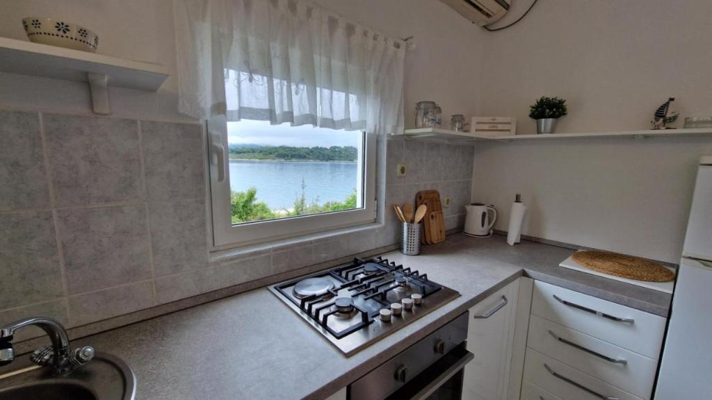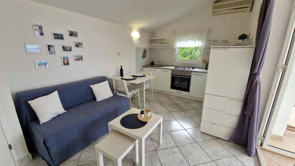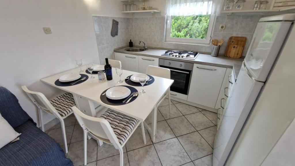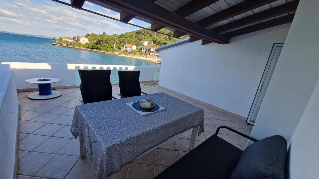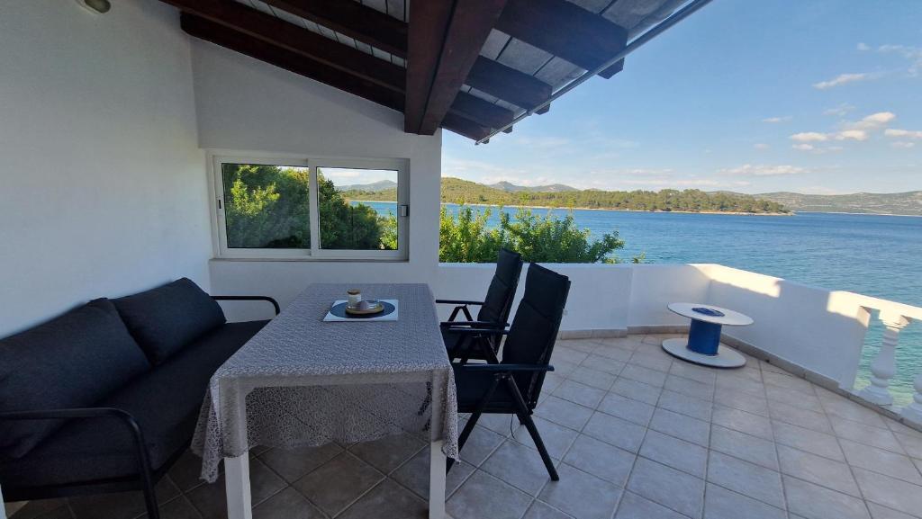 Uživajte v počitnicah le 5 metrov od morja v mirnem zalivu Knež na otoku Iž. Ta udoben apartma z dvema spalnicama ponuja prostorno teraso s čudovitim razgledom na morje in zadarski arhipelag - idealno za jutranjo kavo ali večerno sprostitev. Apartma je klimatiziran in popolnoma opremljen za udobno bivanje: kuhinja z vsemi potrebnimi pripomočki, pralni stroj, brezplačen WiFi, TV, pisalna miza, udobna dnevna soba in zasebna kopalnica. Gostom je na voljo tudi brezplačno parkirišče v bližini. Na zadnji terasi je na voljo žar. Apartma se nahaja v mirnem in sproščujočem okolju, zato je odlična izbira za družine in vse, ki iščejo mirne počitnice ob kristalno čistem morju.
