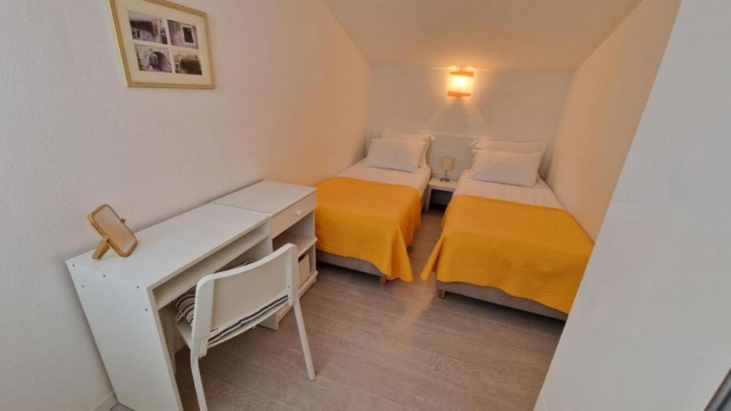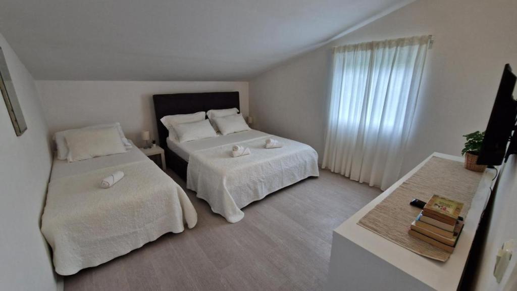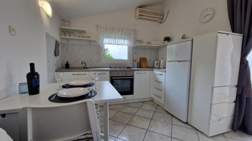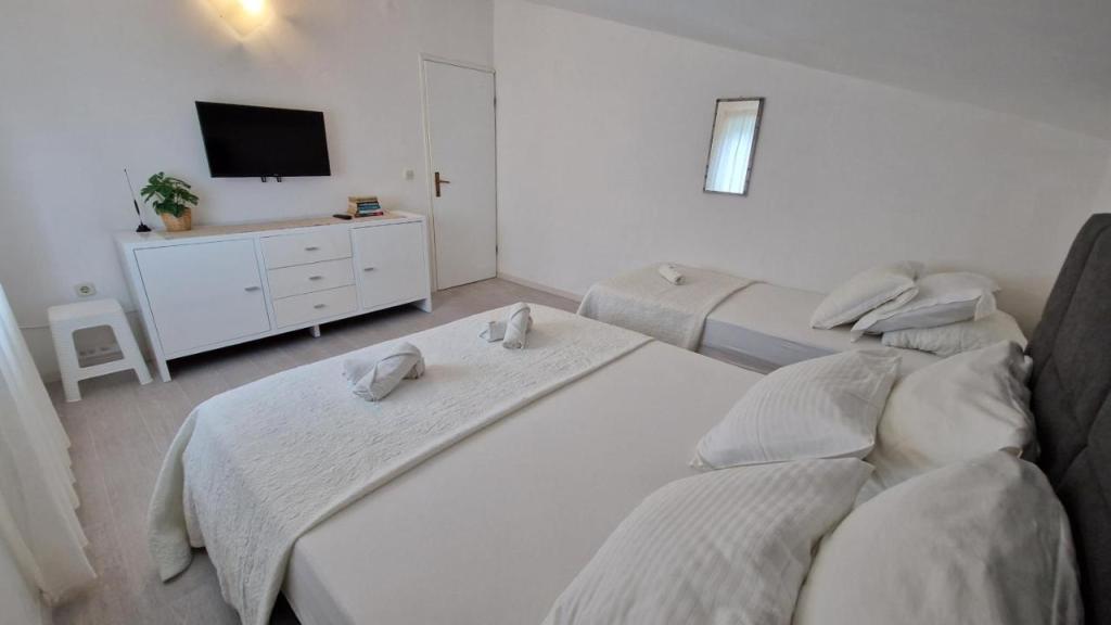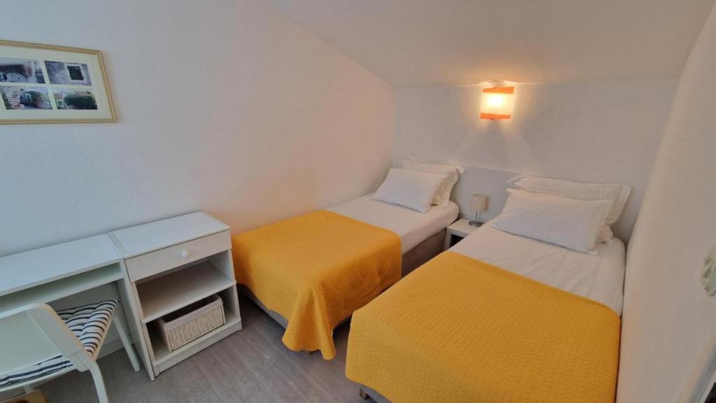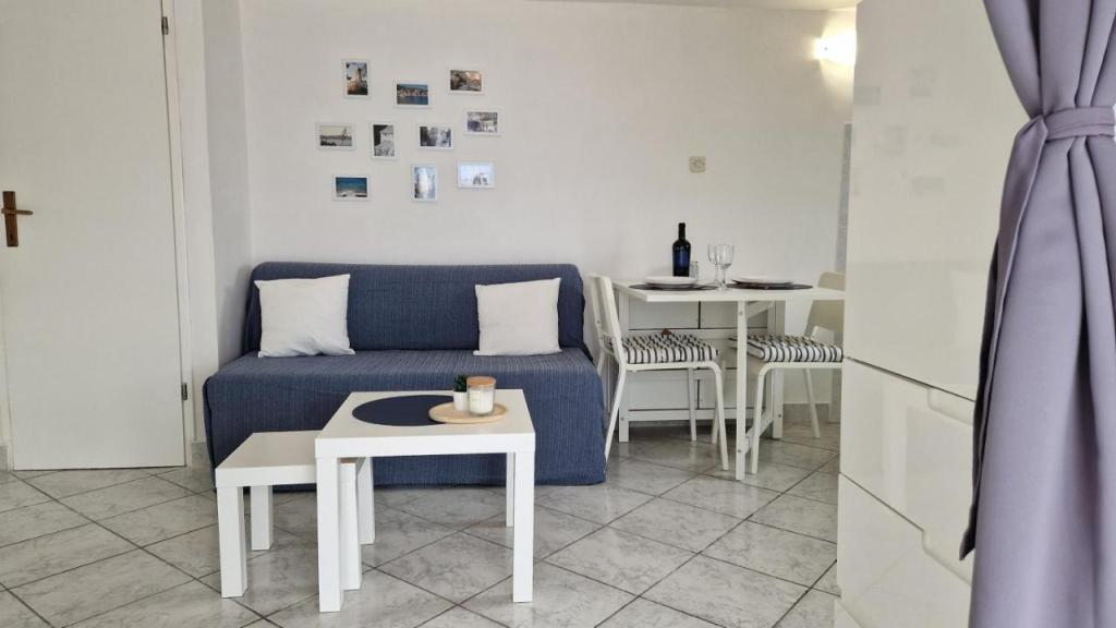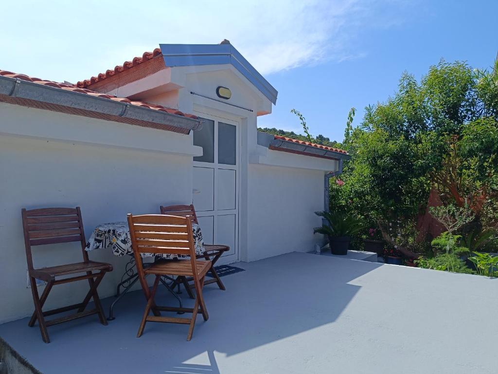 Uživajte v počitnicah le 5 metrov od morja v mirnem zalivu Knež na otoku Iž. Ta udoben apartma z dvema spalnicama ponuja prostorno teraso s čudovitim razgledom na morje in zadarski arhipelag - idealno za jutranjo kavo ali večerno sprostitev. Apartma je klimatiziran in popolnoma opremljen za udobno bivanje: kuhinja z vsemi potrebnimi pripomočki, pralni stroj, brezplačen WiFi, TV, pisalna miza, udobna dnevna soba in zasebna kopalnica. Gostom je na voljo tudi brezplačno parkirišče v bližini. Na zadnji terasi je na voljo žar. Apartma se nahaja v mirnem in sproščujočem okolju, zato je odlična izbira za družine in vse, ki iščejo mirne počitnice ob kristalno čistem morju.