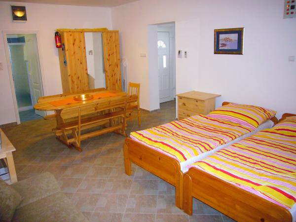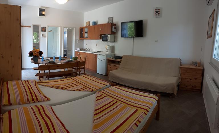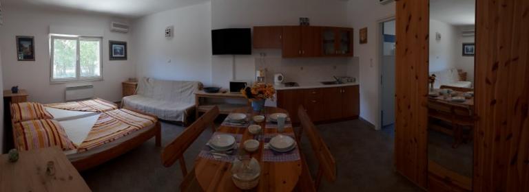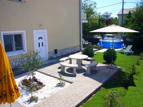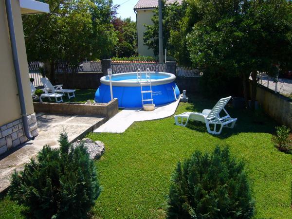 Jadranovo pri Crikvenici - novi apartmaji za najem, z uporabo družinskega bazena. Bazen obratuje od 17. junija do 15. septembra. Apartma za 4 osebe - največ vključno z otroki - v pritličju na površini 35 m2 z zasebno teraso 14 m2. Sestavljen je iz apartmajske sobe (2 postelji 90 × 200 in raztegljiv kavč), kuhinje in jedilnega kompleta ter spalnice z zakonsko posteljo in kopalnico. Studio apartma za 3 osebe - največ vključno z otroki - v pritličju na površini 32 m2 z zasebno teraso 10 m2. Sestavljen je iz apartmajske sobe, opremljene s tremi ločenimi posteljami (2 postelji 90 × 200, raztegljiv kavč), kuhinje, jedilnega kompleta in kopalnice. Cene veljajo za najmanj 6 nočitev. Popust za daljša bivanja. Zasebno ograjeno parkirišče znotraj parcele. Brezplačen WIFI internet.