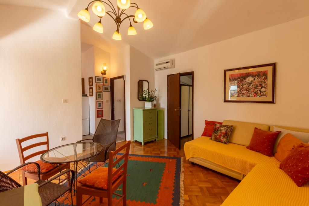 Mirni družinski apartmaji s čudovitim pogledom na morje - najlepši zaliv Havišće na severnem Jadranu. Apartmaji se nahajajo v zelenju z lastnim parkiriščem. Vsakemu stanovanju pripada eno parkirno mesto. Apartmaji imajo velike terase 20 m2, z ležišči in sedežno garnituro. Možna je uporaba električnega žara. Do plaže se pride po stopnicah, le peš cca.
