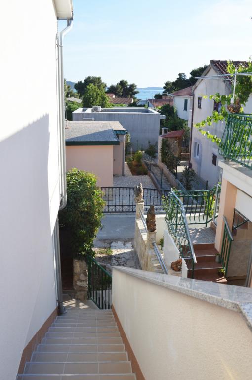 JADRIJA, tiho, malo mesto v borovem gozdu z veliko sence, dišeče zraku, več vrst beach- popolne počitnice za starše in otroke, športnike, ... Jadrijska plaža je znana tudi za veliko število vodnih športnih aktivnosti na ponudbo za obiskovalce. Idealno mesto za deskarje in deskarje, v bližini kolesarskih stez. To se nahaja med Šibenikom in Vodice, nasproti otoku Zlarin in Prvić, in Fort St. Nicholas, in v bližini 2 NP. Krka in Kornati. Ko ste v Jadrija ni treba uporabljati avto, ker je vse v bližini; supermarket, picerija, restavracije, bari, otroško igrišče ... Središče Šibenika, v poletnem vožnja linije čolnom, 15 min. lepa kanal st. Ante. App. ima ločen vhod, 70 m2, s terasami, da vidijo pogled. Ima dve ločeni sobi; spalnica s posteljo in še eno sobo z 2 posteljama, toalet- kopalnica WC, kuhinjo z jedilnico, in 3 terase z mizo in stoli, ležalniki, (spredaj, zadaj in na obeh straneh), TV-SAT, klima, wi-fi .. .. Plaža je 80 m, 2-3 minut. Skozi senci.