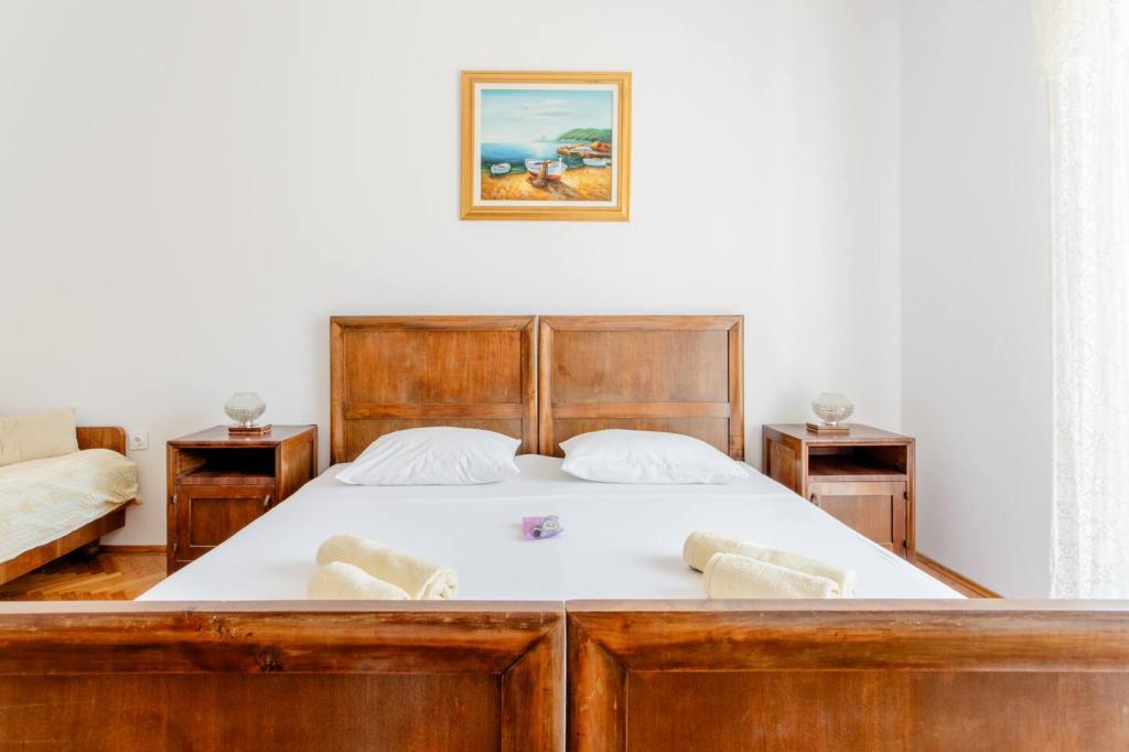 Družinska hiša se nahaja v bližini morja, v središču Jelse, v mirnem in tihem okolju, ki je idealno za družinsko nastanitev in počitnice. V radiju 100 metrov se nahaja vse, kar je pomembno za goste: mestna plaža, slaščičarne, restavracije, trgovine, pošta, banka, lekarna in park s posebnimi vsebinami za otroke. V radiju 200 m se nahaja pomol za hitro ladjo s kopnim in avtobusna postaja, ki povezuje Jelso s celotnim otokom Hvar. Kot gostitelj sem vedno na voljo svojim gostom. Na voljo so tri ločene namestitve: 1. celotno nadstropje družinske hiše za 10 oseb (3 sobe, kuhinja in 2 kopalnici) 2. dve ločeni troposteljni sobi z uporabo skupne kopalnice 3. apartma za štiri osebe (1 soba, kopalnica in kuhinja)