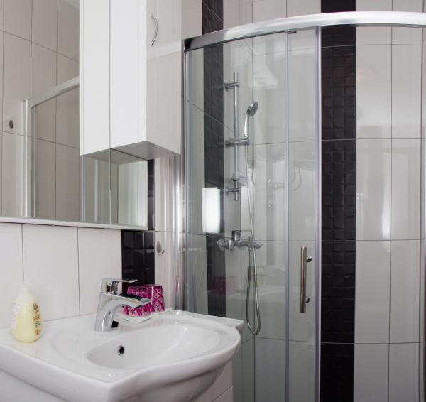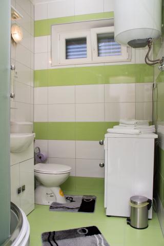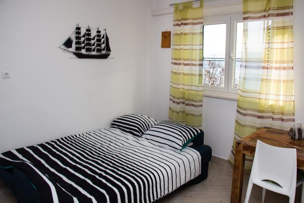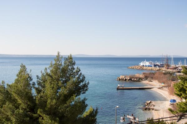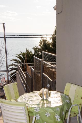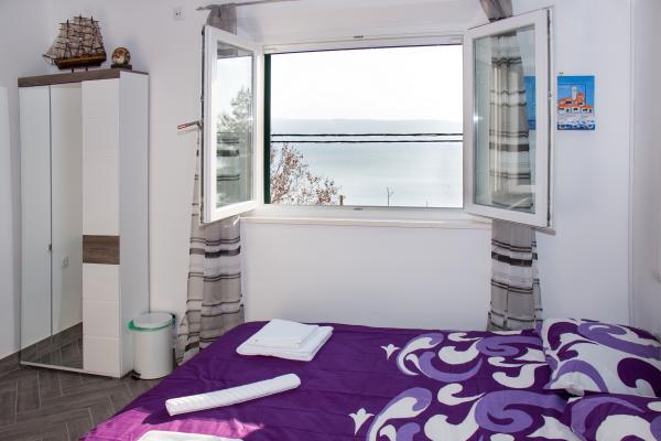 Apartma je sestavljen iz dveh sob (vsaka soba ima zakonsko posteljo 198x180 in kopalnico, tudi vsaka soba je opremljena z lastno klimatsko napravo, televizijo in brezžični internet) in ločen dnevni prostor z raztegljivim kavčem (200x160) s kuhinjo in zasebno kopalnica Vsaka soba in dnevna soba ima jedilno mizo. Tudi stanovanje je uporaba zunanjo teraso, ki ima prekrasen pogled na morje in otok Brač. Terasa je opremljen tudi z mizami in stoli in sončnik. Soseska je tiho in mirno, idealna za družine, plaža je čez cesto. Avtobusna postaja se nahaja 200 metrov proč in avtobusi vsakih 15 minut do Splita in Omiša