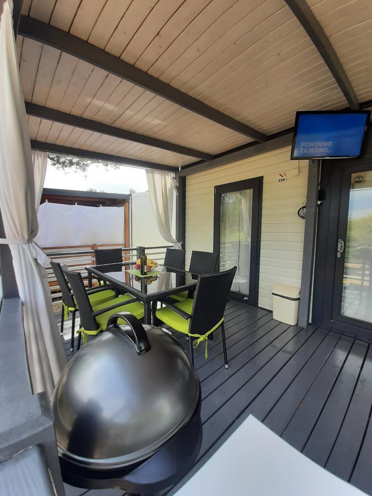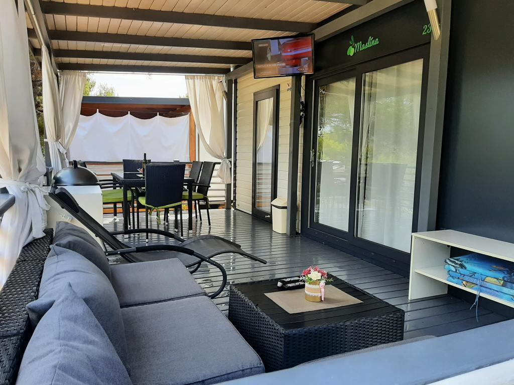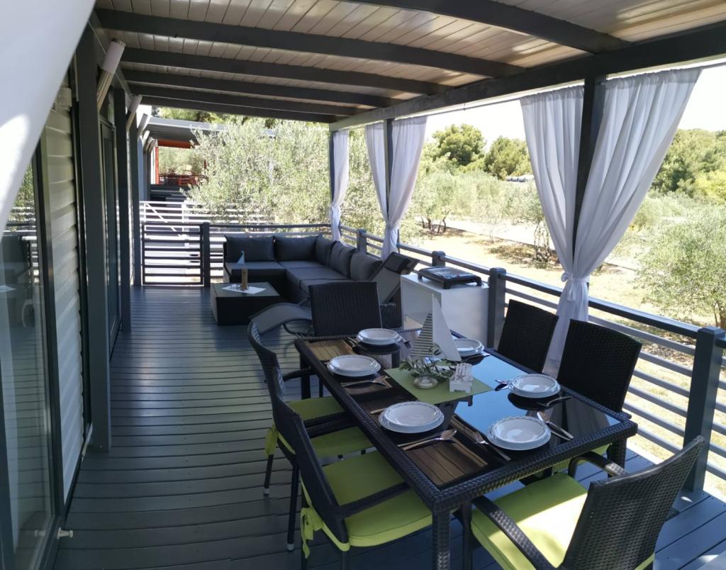 Mobile Home Olive se nahaja v vasi Jezera, tik ob prodnati plaži, ponuja pravo mediteransko doživetje, pogled na morje, mir na divjino in aromatičen vonj okoliških dreves in rastlin. Za goste kampa so na voljo številni objekti; nogometna in teniška igrišča, namizni tenis, košarkarska igrišča in mini golf. Znotraj kampa najdete tudi mini tržnico, restavracijo, bar in vse, kar potrebujete za brezskrbne počitnice. Popolnoma urejena in klimatizirana mobilna hiška Olive sestavljata dve dvoposteljni sobi, ena z ločenima ležiščema in ena z zakonskimi ležišči, dnevna soba s kuhinjo in prostorno teraso. Hiša Olive je povsem nova in sodobno opremljena, z veliko in lepo teraso ter zagotavlja edinstveno vzdušje. Prijetne barve in peščica podrobnosti bodo vaše bivanje v koči nepozabno.