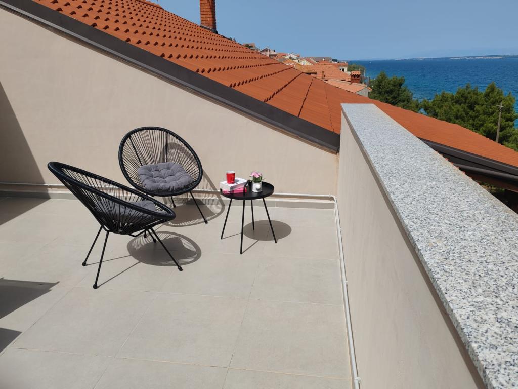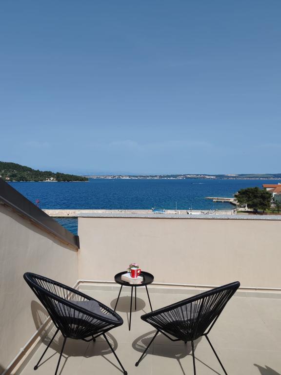 Apartma Nina (A6) se nahaja v mirnem mestu Kali na otoku Ugljan. Apartma je od plaže oddaljen 100 m, terasa ponuja pogled na morje, otok Ošljak, Zadar in Zadarski kanal. Prednost je popolnoma nov in udoben apartma s 3 spalnicami, veliko dnevno sobo, kuhinjo in 2 velikima kopalnicama. Da bo vaše bivanje kar se da prijetno, se sprostite in uživajte na pokriti terasi. Za vašega dojenčka imamo posteljico in hranilnik. Minimalno bivanje 4 dni. Sunny Apartma (A2) je nov apartma z 1 spalnico, kuhinjo in dnevno sobo, kopalnico in ločen WC. Z balkona je čudovit pogled na morje. Minimalno bivanje 3 dni. Apartma Azure (A4) je idealen za miren dopust z družino ali prijatelji. Uživajte v neverjetnem pogledu na morje s prostorne terase, sprostite se v udobni notranjosti z dvema spalnicama in moderno kuhinjo. Nahaja se le dve minuti hoje od plaže. Dodatno ležišče in otroška posteljica sta na voljo na zahtevo. Minimalno bivanje 4 dni.