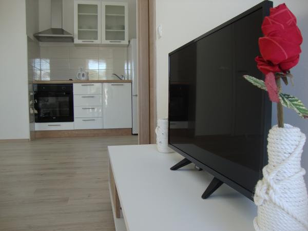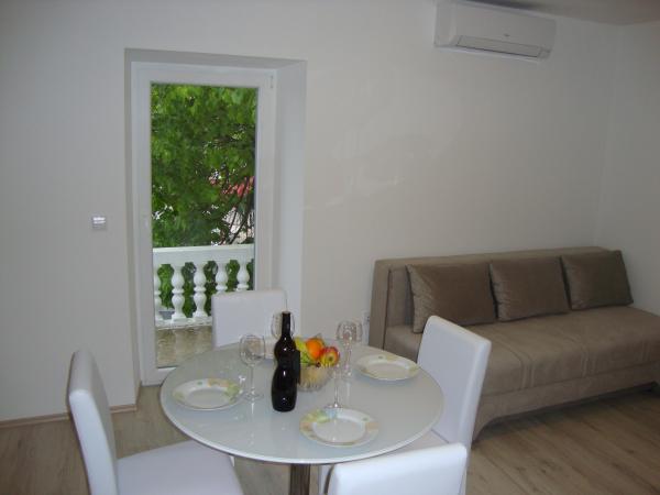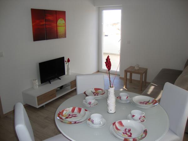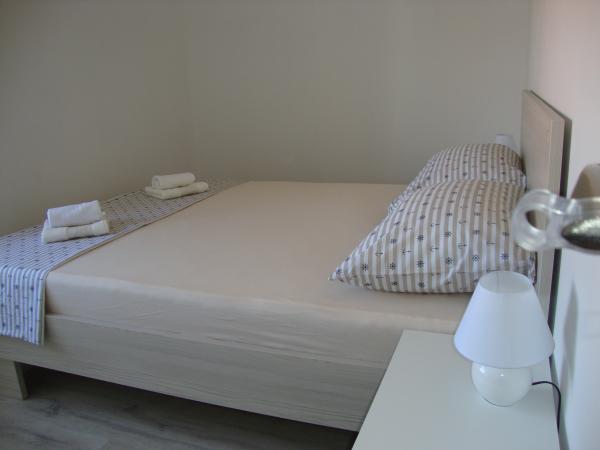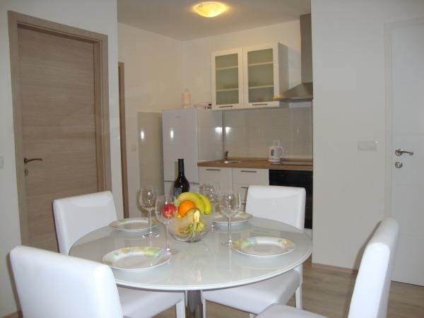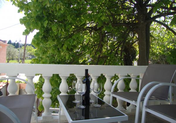 Apartmaji Longin je v prvem nadstropju in je idealna za dve družini. Ti so povezani z majhno dvorano, ki so nameščeni na vhodna vrata hiše. Lastniki živijo v pritličju, in zemljišča okoli hiše dvorišča, oljčniku in zunanji kamin je, da je na voljo gostom. Nadstropju stanovanje ima 31 m2 in teraso 20 m2 in stanovanje LEONA ima 31 m2 in balkon 4 m2. Poleg hiše je mini-market. Plaža je 300m in 800m in oba imata brezplačno parkiranje, prhe in objekte s hrano in pijačo. Otok Ugljan je povezan z izrecnim linij celine vsako uro tako da ni Zadar je nedaleč stran. Apartmaji Longin se nahajajo v vasi Kali. Dve manjši javni brezplačnih parkirnih mest se nahaja 50m od apartmaja, medtem ko z možnostjo parkirnega prostora.