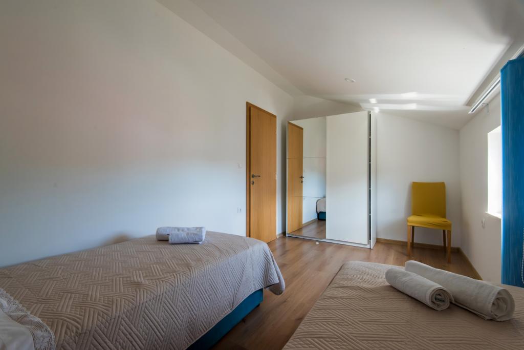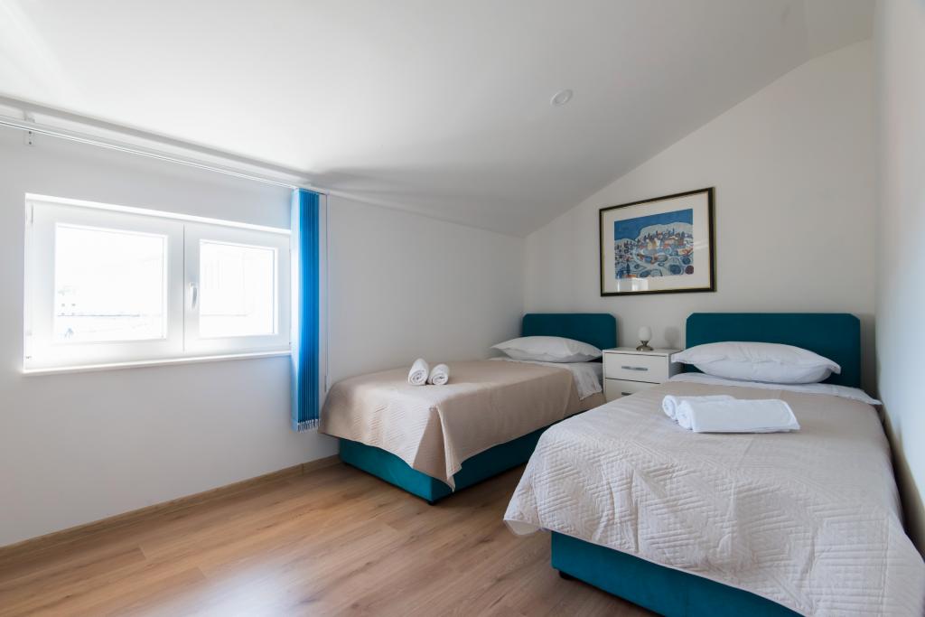 Apartmaji so v prvem nadstropju hiše, ki se nahaja v zalivu Lamjana v mirnem okolju ob morju, moderno in popolnoma opremljeno. Apartma 2 ima eno spalnico z zakonsko posteljo in velik raztegljiv kavč v kuhinjo z izhodom na balkon, kjer je pohištvo, kopalnica s tušem. Apartma 1 ima dve spalnici in dodatno ležišče v kuhinji, kopalnico s tušem, na balkonu pohištva. Središče mesta je približno 900 m. Na dvorišču je žar, ki je na voljo za naše goste.