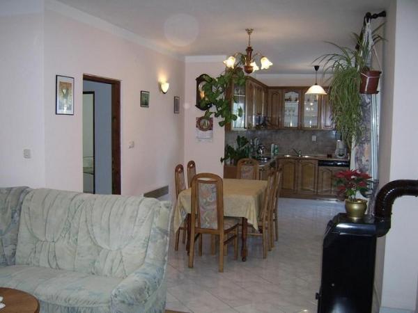 Apartmaji obdana z vrtom (1000 kvadratnih metrov) s cvetjem in grmovje, eno stanovanje v pritličju, 75m2, ima veliko teraso 80m2, 2 spalnici z zakonsko posteljo, če je to potrebno, bo dodatno ležišče, kopalnica s kadjo, hodnik, jedilnico in kuhinjo se stanovanje nahaja, električna pečica, štedilnik z dvema obročema, električnih in dva plina, televizijo in brezžični dostop do interneta, do terase z garnituro! Stanovanje v nadstropju ima 3 spalnice z zakonsko posteljo, veliko kopalnico in majhno stanovanje je velik in udoben, TV, WiFi, štedilnik, pečica .... Obstaja žar in bazen za otroke Hiša se nahaja na mirni lokaciji 500m od glavne ceste in sosedi naslednji-vrata, miru in tišini ...