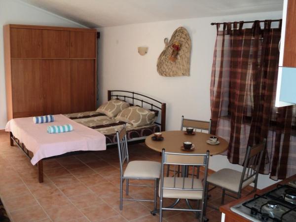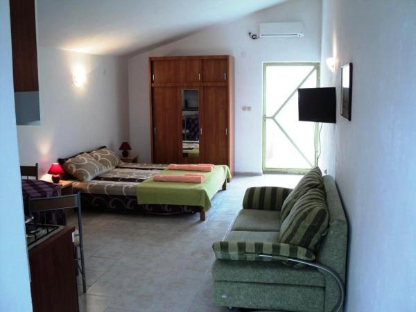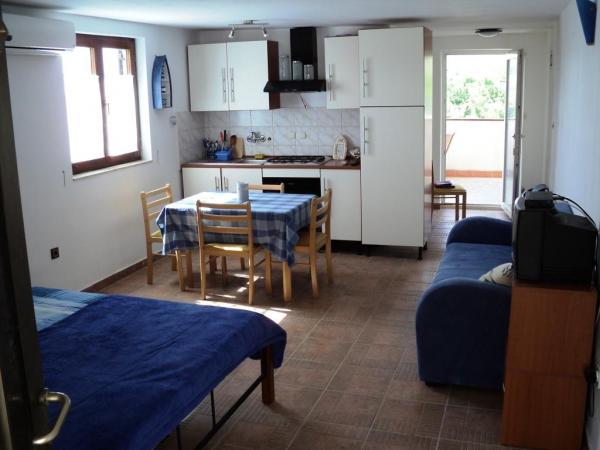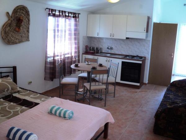 Objekt je sestavljen iz štirih enakovrednih, sodobno opremljenih garsonjeri, dveh v prvem nadstropju in dveh v pritličju. Vsak studio ima površino 32 m2, ima ločen vhod, veliko teraso 12 m2 s pogledom na morje, SAT TV, WIFI in klimo. Opremo sestavljajo prostorne postelje, kuhinja s pečico in plinskim štedilnikom, velik hladilnik z zamrzovalnikom, kotliček, kavni avtomat, napa itd. Kopalnica s straniščem, umivalnikom in tušem. Hiša ima prostorno in ograjeno dvorišče za brezplačno parkiranje in žar. Dostop do manjše zaščitene plaže po lastnih stopnicah direktno z dvorišča na razdalji cca 80 m 100 m od hiše je velika kakovostna restavracija, picerija in sladoled. Pri nas dobite počitnice brez hrupa, čudovito čisto morje, odprt pogled na morje in Velebit.
