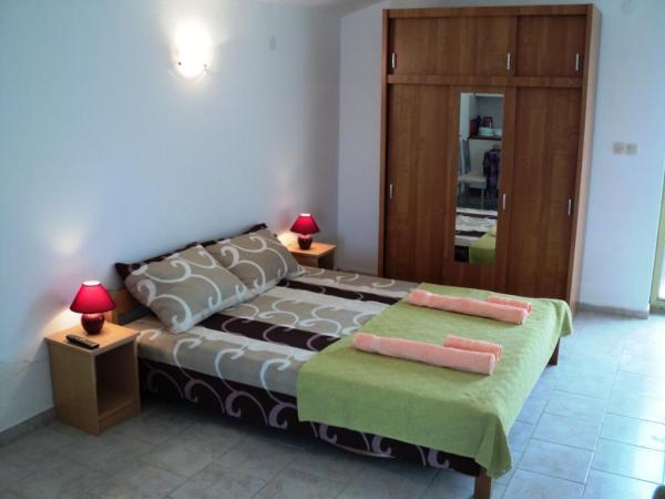 Preberite več Namestitvene enoteRezervacija prenočišča se izvede s plačilom 100 € na apartma na naš poslovni račun. Izmene gostov v polni sezoni so ob sobotah. Gost mora zapustiti apartma do 10 ha, novi gostje lahko vstopijo v nastanitev ob 14. uri. Uporaba klimatske naprave se zaračuna 5 € na dan uporabe. Kot veliki ljubitelji živali sprejemamo goste s psi. Majhen pes do 5 kg in višine 30 cm je vključen v ceno, večji pes ali druga žival pa 5 € na dan.
