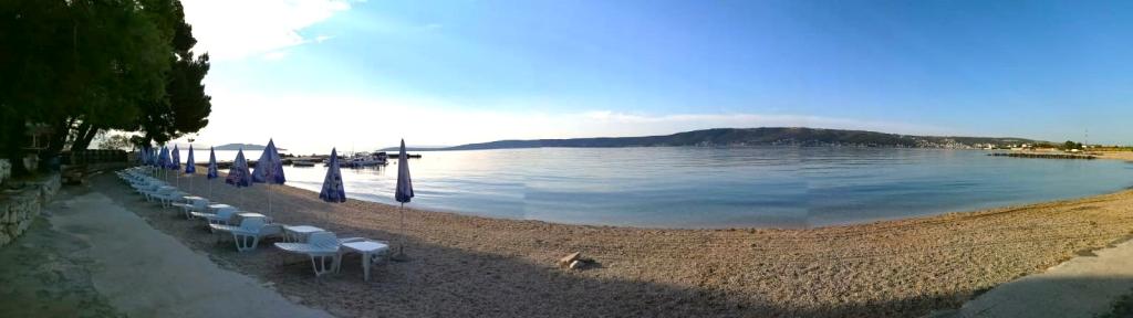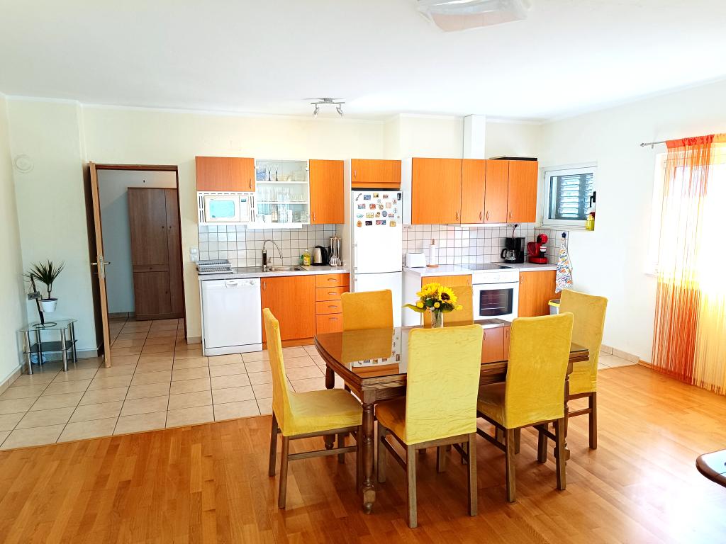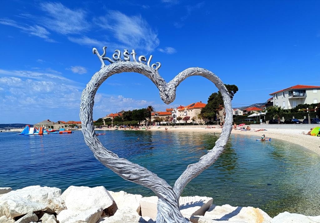 Dvosobno stanovanje v Kaštel Štafiliću - BILE, velikosti 77 m2, se nahaja na odlični lokaciji: cca 3 km od letališča, 10 km od centra Trogirja, 16-20 km od centra Solina in Splita. V bližini je več lepih prodnatih in čistih plaž, najbližja pa je oddaljena približno 7 minut hoje. Apartma ima lastno parkirišče za goste, v bližini pa je več supermarketov. Apartma je klimatiziran in obsega dobro opremljeno kuhinjo, veliko dnevno sobo in verando, dve spalnici (ena z zakonsko posteljo, druga z dvema ločenima posteljama), kopalnico in hodnik. Na žalost hišni ljubljenčki niso dobrodošli, prav tako ne hrupne zabave. Primerna je predvsem za družine z otroki zaradi prostorne dnevne sobe kot prostora za igro. Apartma ima optično, hitro, internetno povezavo in pametni TV sprejemnik s številnimi kanali. Kaštela sestavljajo 7 obalnih mest, vsako pa je privlačno za goste s svojo zgodovino in zanimivostmi. Vzdolž njih se razteza čudovita promenada ob morju, ki je polna gostinske ponudbe