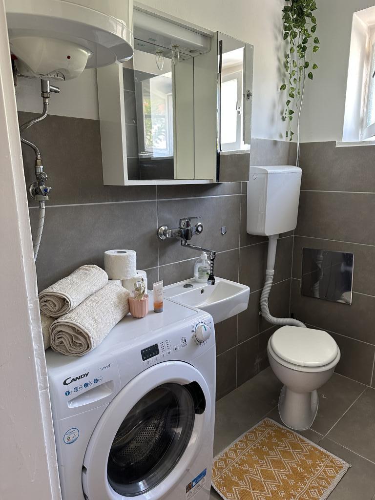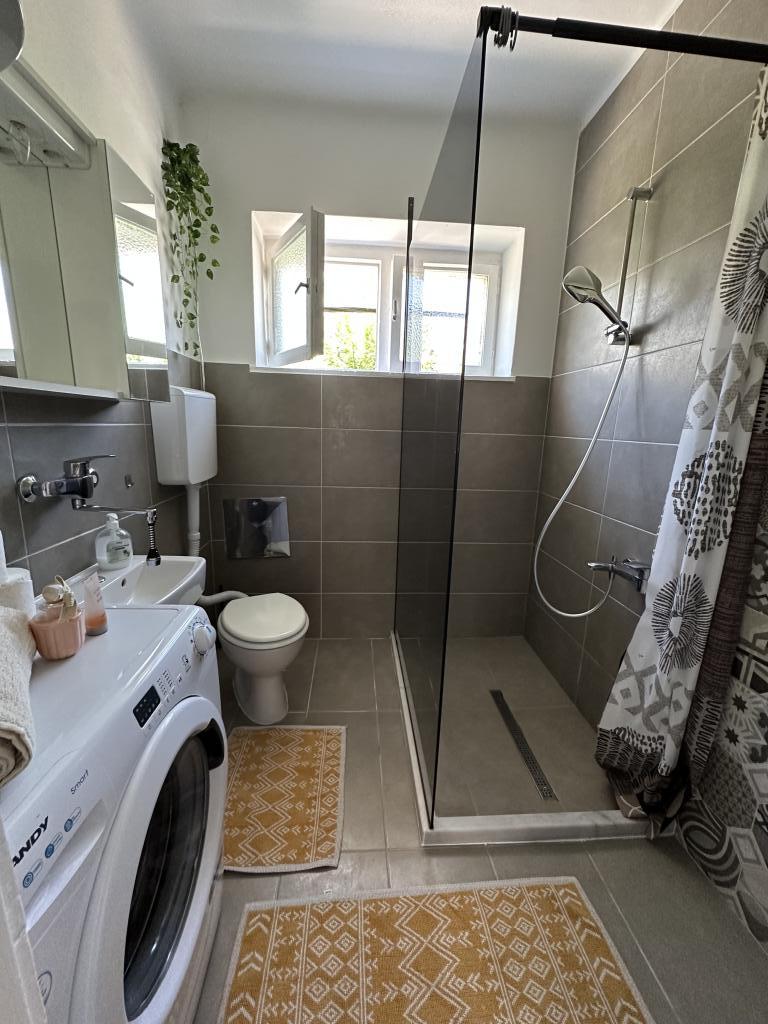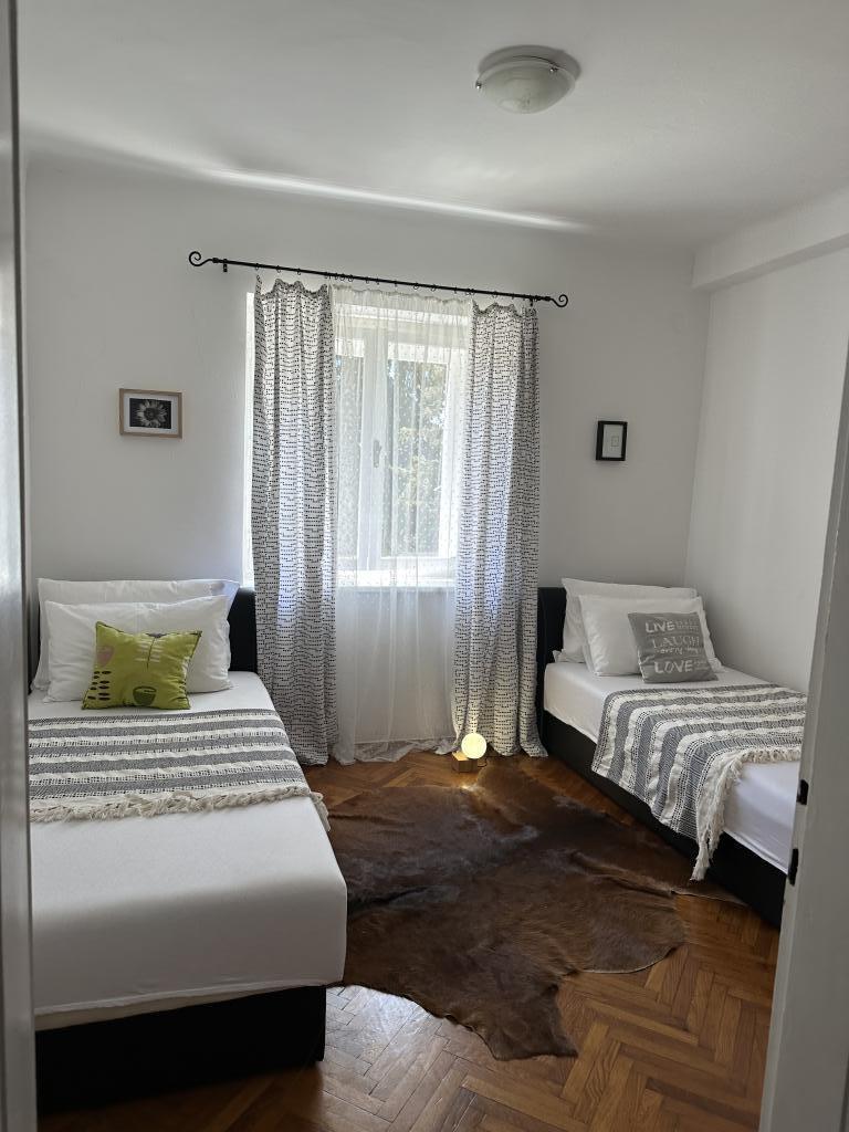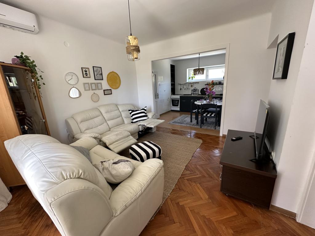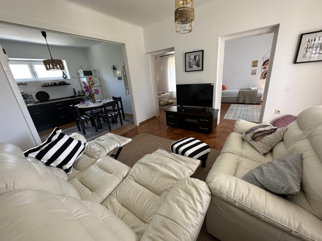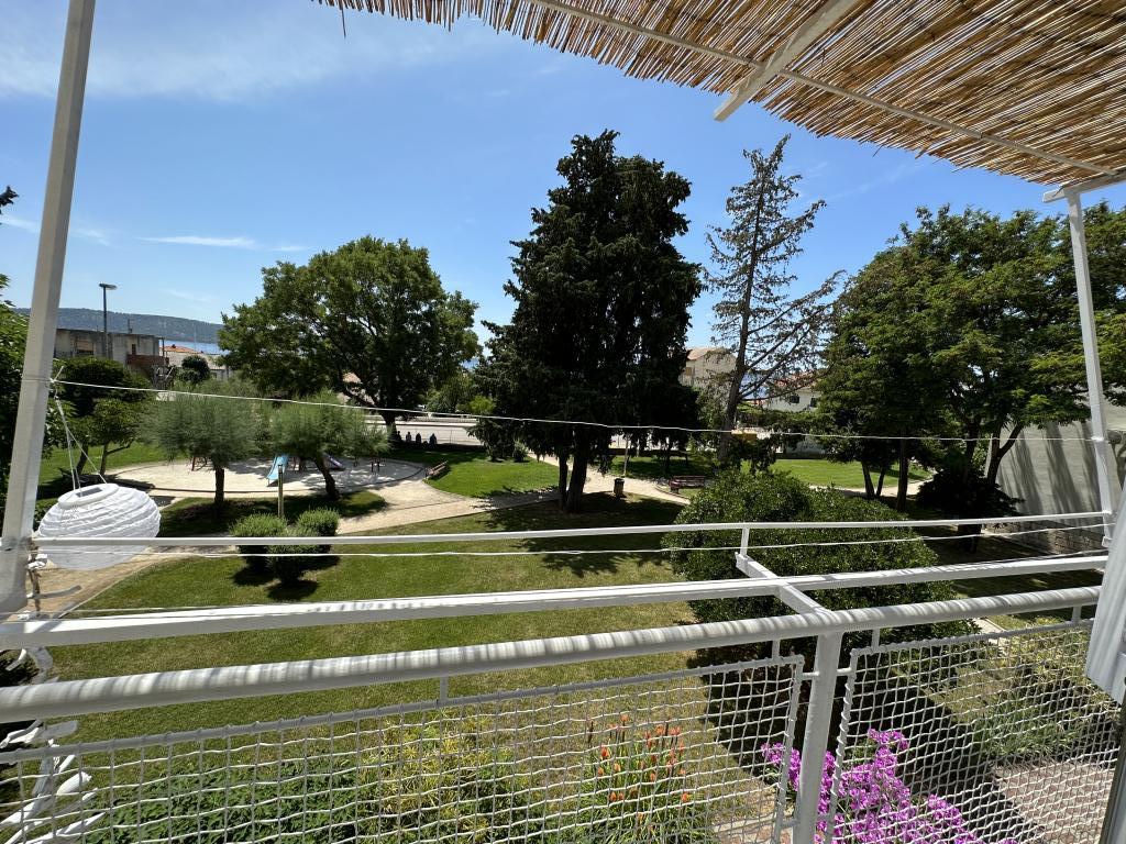 Trisobno družinsko stanovanje v mirnem naselju Kaštel Gomilica. Stanovanje se nahaja ob urejenem parku z igriščem za otroke. Marina Kaštela je oddaljena 50 m, najbližja plaža pa je 250 m stran.