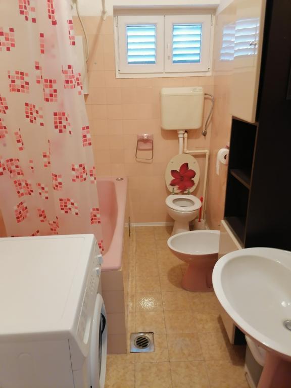 Popolnoma opremljen apartma Goge (1. nadstropje hiše) v Kaštel Gomilici, druga vrsta od morja, 200 m od plaže. Apartma Goge ima: dvoposteljno sobo, enojno posteljo in 2 dodatni ležišči v dnevni sobi. Pralni stroj, pomivalni stroj, vse ostale gospodinjske aparate in: klimatsko napravo, wi-fi, parkirišče. Oddaljenost od Splita 10 km, Trogirja 12 km, letališča 7 km. V marini se nahaja velik bazen, ki ga je mogoče najeti, restavracije, športni objekti, trgovine. V bližini sta Lidl in Kaufland. Avtobusna postaja je oddaljena 50 m. Sprehajališče ob morju, ki povezuje 7 gradov, primerno tudi za kolesarjenje. Cena se dogovori z gostom po e-pošti. HIŠNI LJUBLJENČKI NE SPREJEMAMO. DOBRODOŠLI.