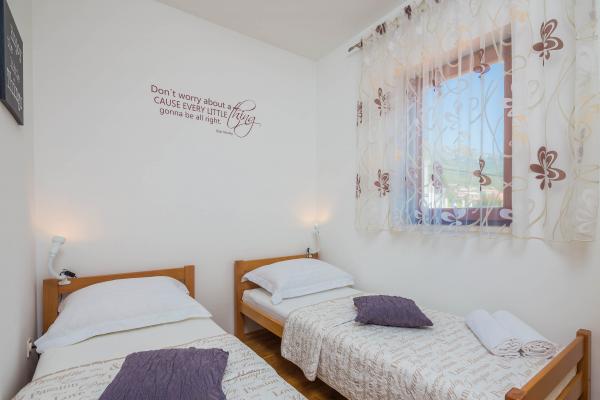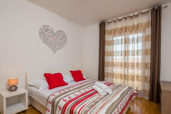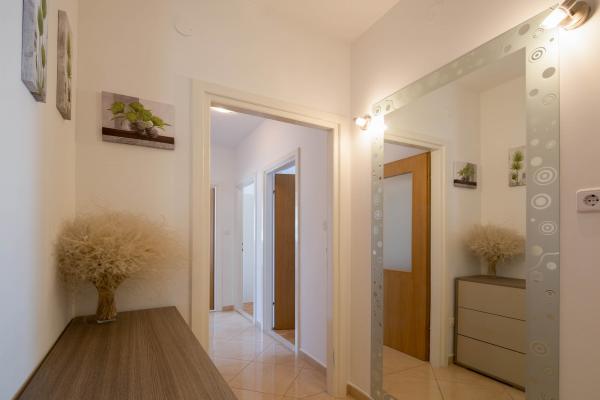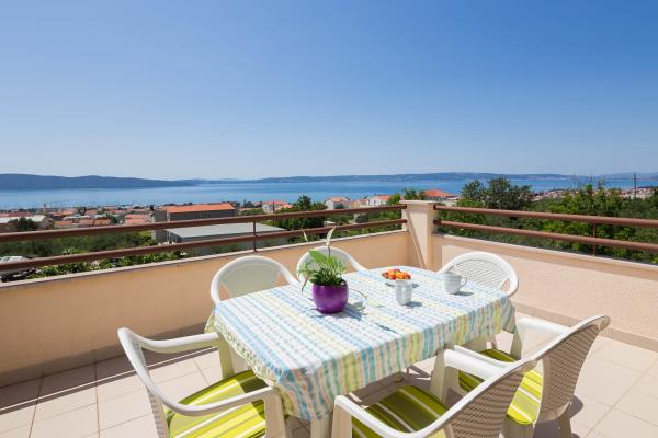 Stanovanje se nahaja v prvem nadstropju s pogledom na morje. Ima tri sobe z zakonsko posteljo, posteljo za dve osebi, ki se nahajajo v dnevni sobi, kuhinja, dnevna soba, kopalnica, WC, tri balkona s pogledom na morje. Apartma je velikosti 90m2. Stanovanje se nahaja v Kaštela zalivu, eden od sedmih vasi mestnega gradu, v bližini znane marine si sposoben za sprejem zasebnih in čarterske jadrnice, vendar je to destinacija za mnoge jadralce. V neposredni bližini objekta so na voljo različne vrste barov, restavracij in trgovin. Če iščete namestitev, ki ponuja popolnoma sproščujoče vzdušje blizu morja, potem ste prišli na pravo mesto. Lepe plaže, blago sredozemsko podnebje, bogata z možnostmi za zabavo v luksuznem in opremljeno stanovanje bo vaše bivanje nepozabnim. Za vsak nasvet in storitev v času svojega ponudnika gostovanja, vas prosimo, da se obrnete gostitelji, ki so pripravljeni, da vam pomaga dobiti največ časa na dopustu.
