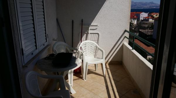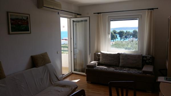 Apartma se nahaja v tretjem nadstropju stanovanjske stavbe v Kaštel Štafiliću, okrožju Bile, v bližini Resnika. S pogledom na morje in ponuja čudovit razgled na celoten zaliv Kaštela, Split in bližnje otoke. Nahaja se na mirni lokaciji na koncu ulice, tako da ni hrupa. Apartma 45m2 je sestavljen iz hodnika, kopalnice, spalnice, velike dnevne sobe s kuhinjo in loggiom. V spalnici je velika postelja za dve osebi, v dnevni sobi je velik raztegljiv kavč, ki postane velika postelja za dve osebi in še en manjši trosed. Kuhinja je popolnoma opremljena, aparat za kavo, pomivalni stroj, pečica. Na loži je mogoče uporabiti električni žar. V apartmaju je sušilnik za lase, sesalnik, likalnik. Uporaba klime je vklkjučena v ceno.
