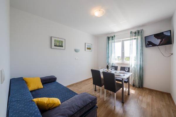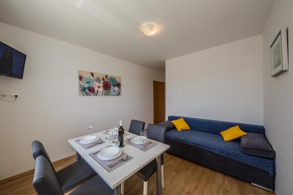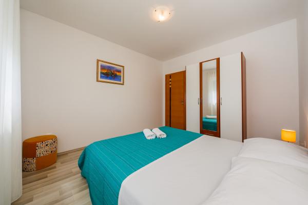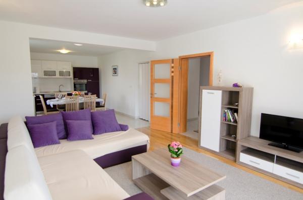 Apartmaji Martina se nahajajo v prostorni, moderni hiši. Hiša je obdana z velikim vrtom in se nahaja na mirni lokaciji. Vsak apartma ima ločen vhod. Prvo stanovanje se nahaja v pritličju hiše in obsega 3 spalnice, 2 kopalnici in veliko kuhinjo z jedilnico in dnevno sobo. Ima tudi lastno teraso in izhod na vrt. V prvem nadstropju hiše je še eno stanovanje. Sestavljen je iz dveh spalnic, kopalnice, kuhinje in dnevne sobe. Ima tudi velik balkon s čudovitim razgledom na okolico. V sklopu apartmajev so 4 brezplačna parkirna mesta in oprema za žar. Najbližji supermarket je od apartmaja oddaljen 5 min hoje, avtobusna postaja, središče mesta in najbližja plaža sta oddaljeni 10 min hoje.