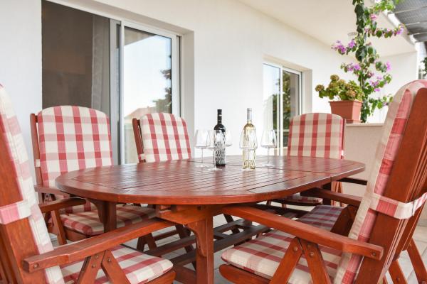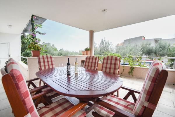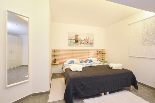 Novo urejeni apartma Mira vas ne bo pustil ravnodušne zaradi novega in modernega sloga, v katerem se boste počutili zelo prijetno. Vsaka soba je zelo prostorna in vsebuje več kot je potrebno: zakonske postelje, kopalnica v vsaki sobi, velike omare, prostorna dnevna in jedilnica ter kuhinja. Na terasi lahko uživate med sproščanjem ob pitju kave ali vina ali žaru, kosilu ali večerji z družino ali prijatelji. Vsaka soba ima zakonsko posteljo in lastno kopalnico s prho, potrebno posteljnino in brisače. Pralni stroj se nahaja v ločeni sobi pred stanovanjem. Dnevna soba in jedilnica sta zelo prostorni. V dnevni sobi se lahko med gledanjem televizije počutite zelo udobno ali pa se preprosto sprostite po zaslugi udobnega raztegljivega kavča. Jedilnica je opremljena za 6 oseb, v kuhinji pa je vse za pripravo obrokov ali pijač in jedilni pribor za 6 oseb. Na terasi lahko dan uživate ob pitju kave ali vina, zajtrku, kosilu ali večerji ali samo žaru z družino ali prijatelji. Parkirišče je brezplačno.