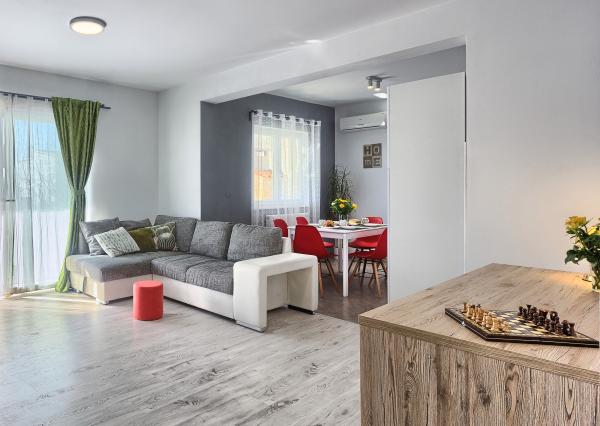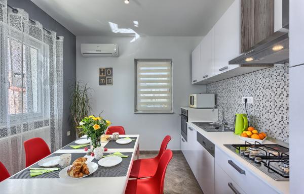 Dragi gostje, naš prenovljeni apartma se nahaja v pritličju družinske hiše v mirnem delu Kaštel Novega, 700m od morja in plaže, v bližini bogatih kulturnih znamenitosti mest Trširja svetovne dediščine UNESCA (8km, 10min), Split (16km, 20min) in Solina (10km, 15min). Plaže v Kaštel Novem so prodnate in peščene, primerne za otroke in odrasle ter se raztezajo v dolžini 3 km. Naš kraj je znan po dolgih sprehajališčih vzdolž obale, ki je bogata z parki, restavracijami, srednjeveškimi utrdbami in zabavami v kulturno-zabavnem letovišču Kaštelanski. Letališče je 4 km od nas, z naše lokacije je zelo enostavno organizirati izlete v notranjost (narodni parki, dalmatinska Zagora) ali na otoke (Čiovo, Brač, Hvar, Vis). Dobrodošli, želimo vam prijetno bivanje