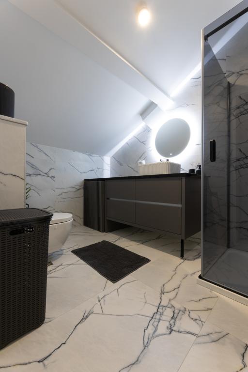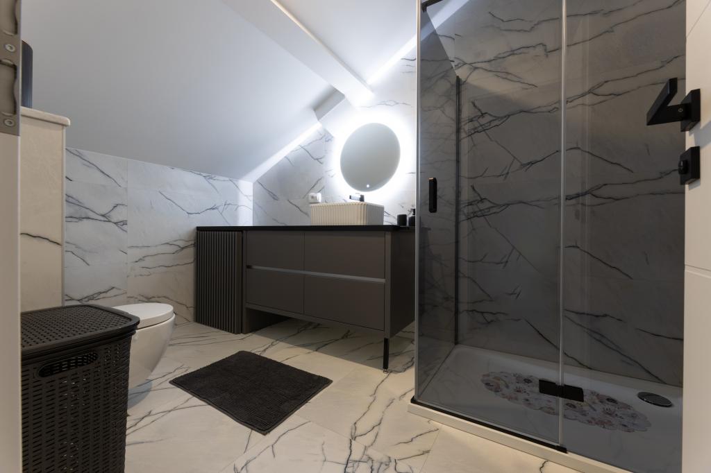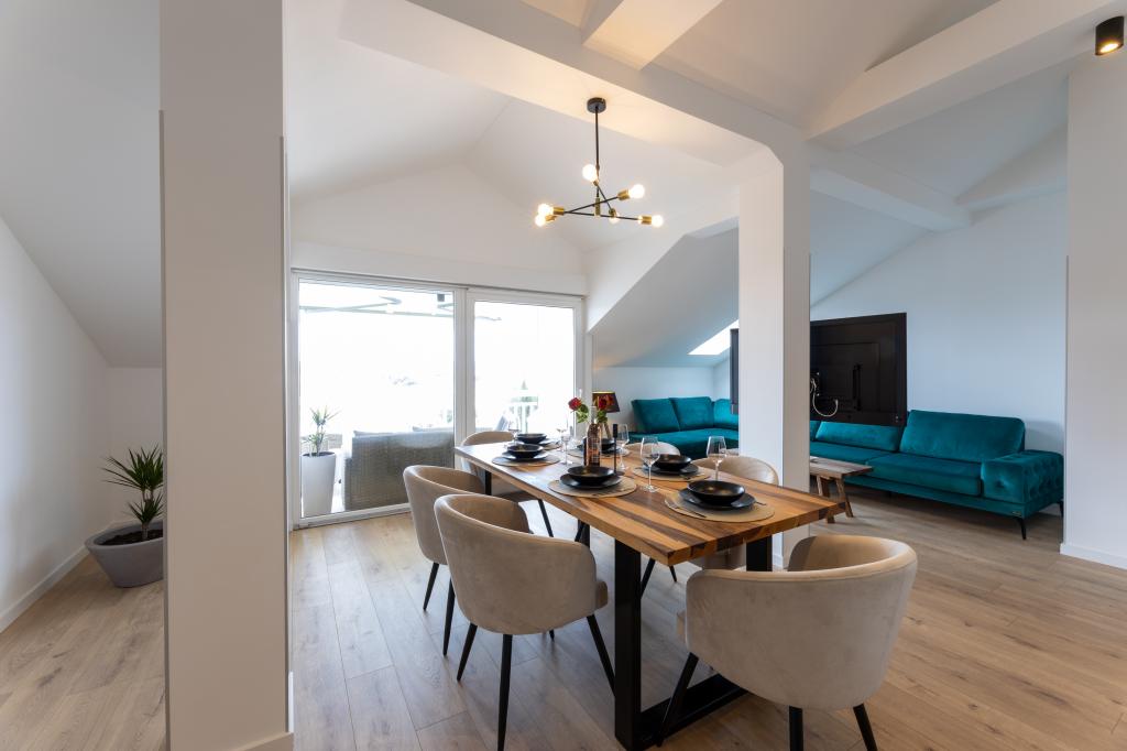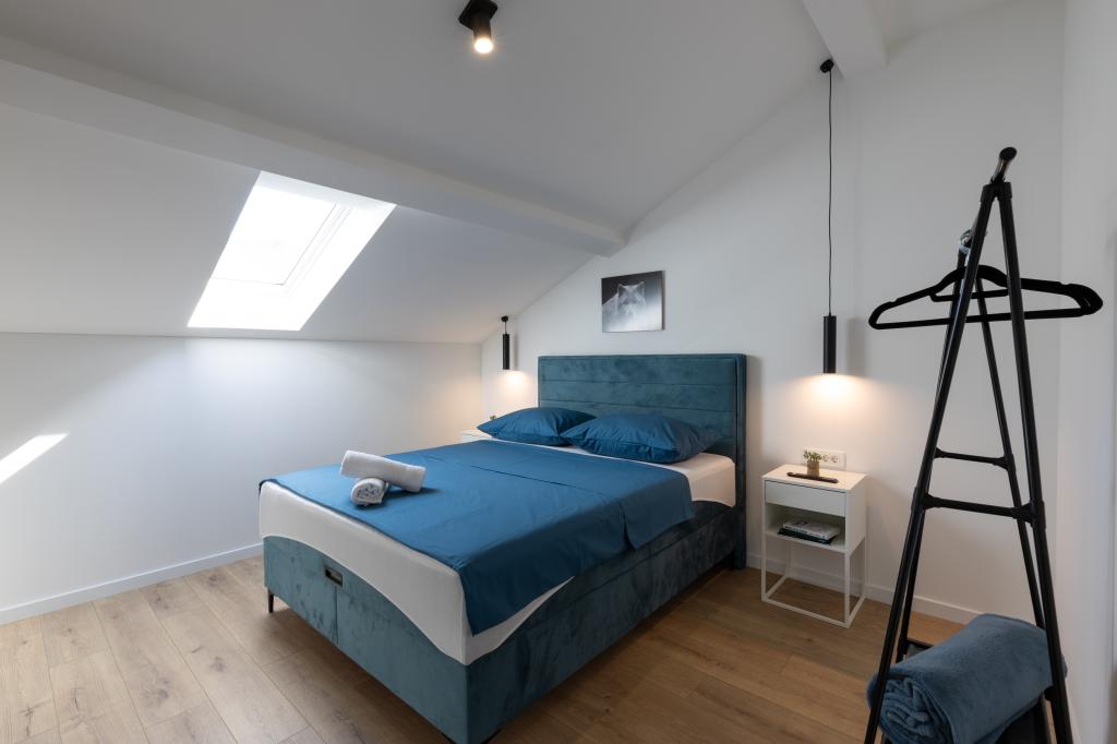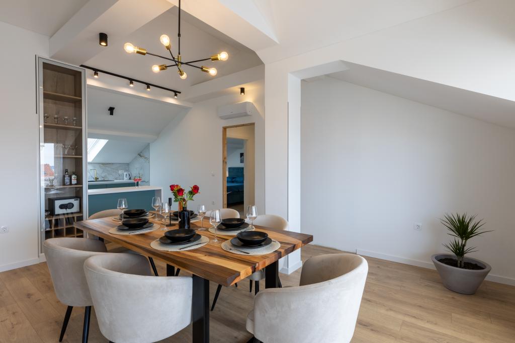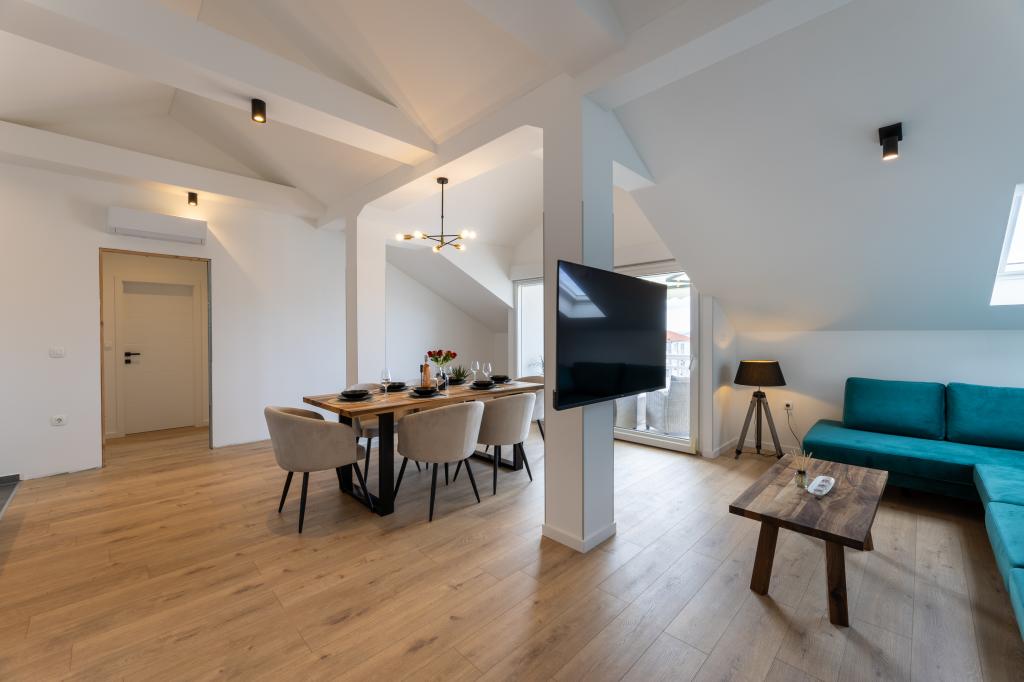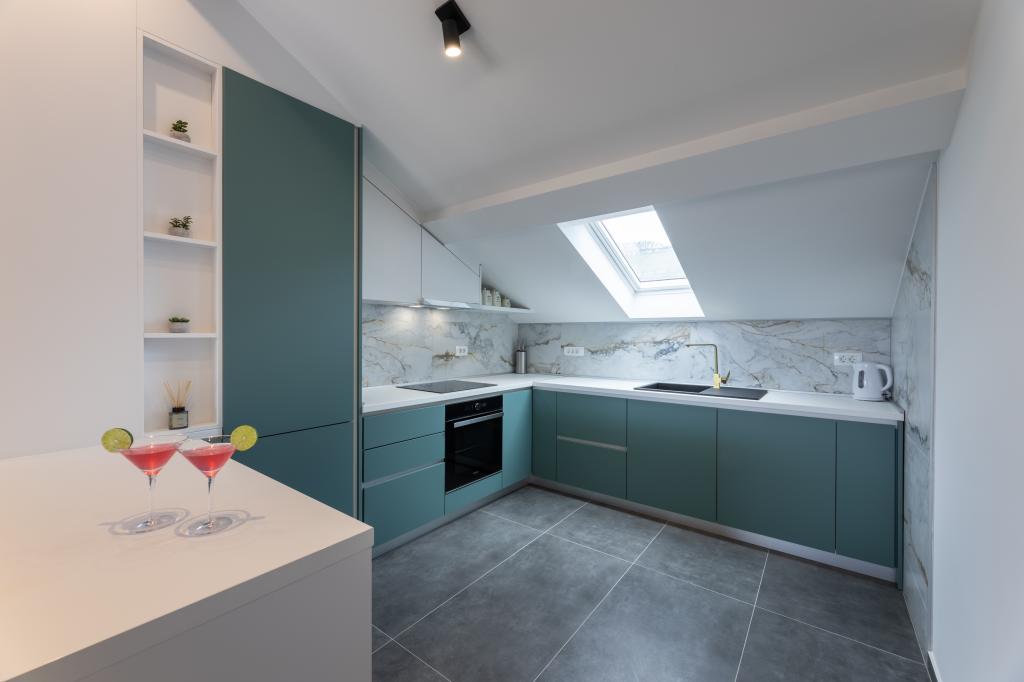 Hiša, v kateri se nahaja apartma Panorama 120 m2 (zgornje nadstropje hiše), se nahaja v mirnem okolju Kaštel Lukšića, kraja med Trogirjem in Splitom. Stanovanje je na novo prenovljeno in opremljeno z vsem potrebnim. Sestavljen je iz 3 spalnic (3 zakonske postelje), dnevne sobe, 2 kopalnic, kuhinje, opremljene z vsemi kuhinjskimi aparati, posodo in jedilnim priborom ter balkona s čudovitim pogledom na morje. Vsaka soba ima svojo televizijo. Za goste apartmaja je na voljo posteljnina, brisače in garažno mesto ima tudi WI-FI.