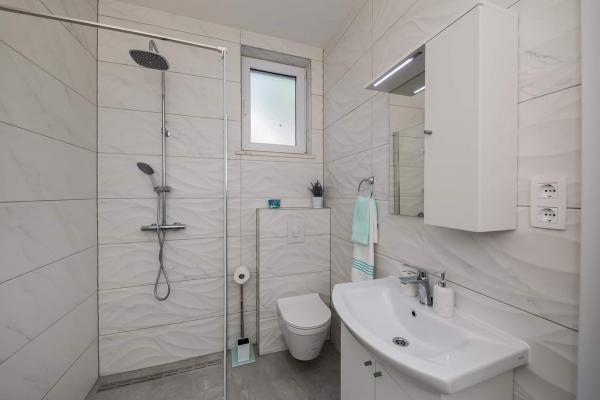 Luksuzno opremljeno stanovanje z ogrevanim bazenom, teraso, zunanjim kaminom in pokritim parkiriščem. . Nahaja se v mirnem delu Kaštele, z neposrednim dostopom s ceste. 1, 2 km od centra mesta in 1, 3 km od morja. Domačini živijo v stanovanju nad stanovanjem, vedno na voljo, vendar diskretno in neopazno. Novo stanovanje, prvič najeto od maja 2019.