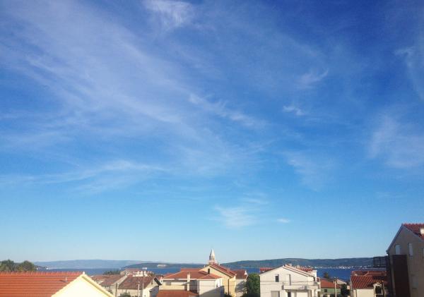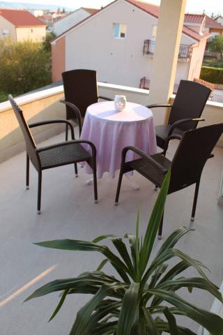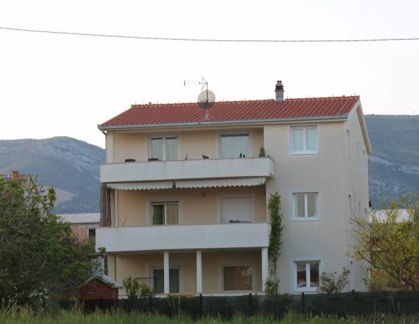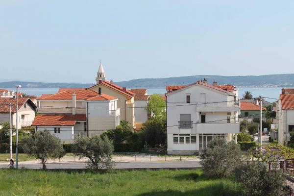 Apartma **** se nahaja v drugem nadstropju hiše. Prostorna in sodobna apartma ima čudovit pogled na morje in centra (cca350-400m) .V bližini je plaža (400m), pošta (300), avtobusne postaje (37 lopa Split-Trogir cca250m), supermarket (100m) Zdravnik (60m) .. Hiša ima pokrito teraso, žar in travnik idealen kraj za druženje in sprostitev.