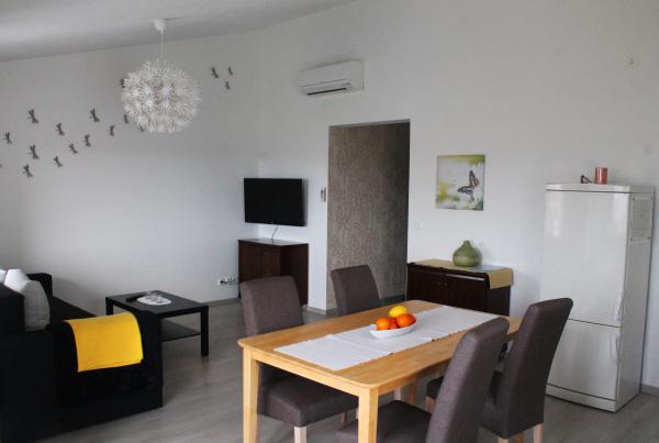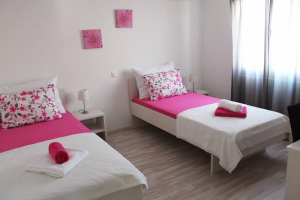 To je bila moja 4. potovanje na Hrvaško. V celoti sem spal v ducat stanovanj. Zdaj smo se odpeljali v dveh družinah, ki zasedajo dva apartmaja. Oba sta nova. Prostorno. Čisto in zelo lepo urejeni. Apartmaji so povezana z deljenim balkon. Ni napake. Vsi (vključno otroški) so bili zelo zadovoljni. Dobro izhodišče za raziskovanje srednje Dalmacije. Poleg tega, da je nemogoče, da ne bi poudaril, da so prednost apartmajev super gostitelji. Zelo lepo in koristno ljudem. Iskreno priporočam vsem, še posebej, ker so cene tudi zelo konkurenčen.
