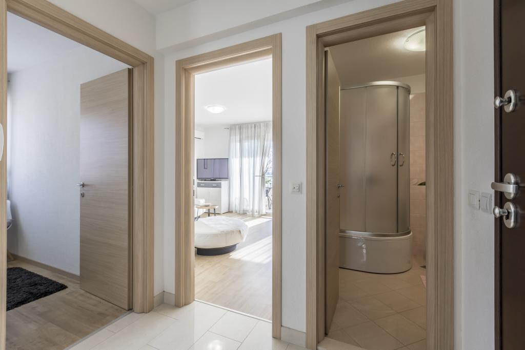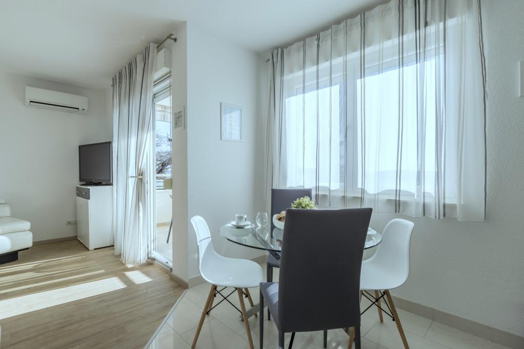 Iris Apartmaji so bili zgrajeni leta 2013th leto in vključuje tri sodobno opremljene apartmaje s klimo in elegantno notranjost, ki se nahaja v bližini glavne promenade in peščene plaže.Dječje igrišče se nahaja na oddaljenosti 100 metara.Prednost stanovanje se nahaja v bližini večjih mest Splita in Trogirja, ki so bogate s kulturno baštinom.Ljubitelji sprehodi lahko uživali v dolgih sprehodih ob obali, ki poteka skozi sedem gradov. Apartmaji imajo popolnoma opremljeno kuhinjo, dnevno sobo, dve spalnici in kopalnico s tušem. Vse enote vključujejo omaro, bivalni prostor in plazma TV.
