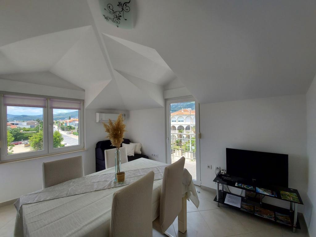 V hiši sta dva apartmaja, oceniti apt. 1, ki je kot nalašč. Ima dve terase, eno z dnevno sobo s pogledom na morje. Stanovanje je moderno in čisto. Klimatska naprava je ne samo v kuhinji, če pa pustite vrata v sobo odprto, tako da je dovolj. Prosti Wifi. Hiša stoji na vaško cesto, kjer je prometa podnevi in ponoči, vendar pa naše stanovanje je usmerjen na drugo stran, tako da ni nič, da nas moti. Nedaleč stran je trgovina. Super je tudi bazen z ležalniki in tuš. Morja je okoli 200 m, ampak smo šli malo dlje, je bil boljši vstop v vodo. Bližje plaža so v morju večjih kamnov. Sicer pa oba prodnate plaže. V bližini je več restavracij. Ob plaži sprehod do zgodovinskem delu mesta, nekaj za romantike. Obstajajo tudi trgovine, restavracije, izposoja koles. Na potovanju je kratek sprehod do Splita in Trogir. Blizu Split letališče, tako da letala letela nad nami, ampak se mi niti ne posluša. G. lastnik Zoran je zelo prijazna in koristna. Pustite nam zelo veliko. Mislim, da je primerna. 1 zasluži 4 zvezdice. Všeč mi je, da jo priporočam vsem :-)