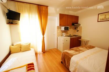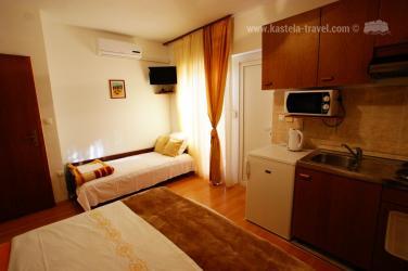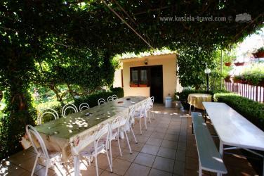 Hiša se nahaja v Kaštel Štafilić, plaža je 300 metrov. Hiša ima 4 apartmaja za 15 oseb, kar je idealno za družinske počitnice. Hiša je obdana z zelenjem, ki zagotavlja senco za počitek in sprostitev. Vsi gostje lahko uporabljajo letna kuhinja in zunanji žar.