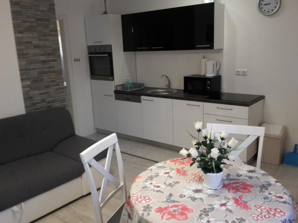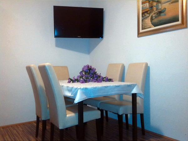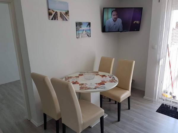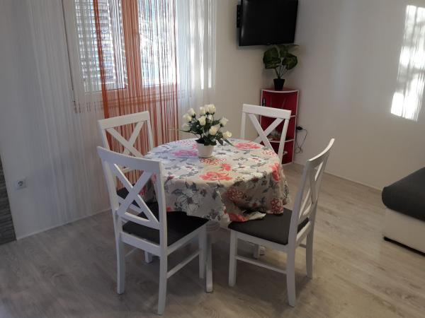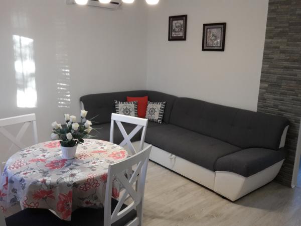 Apartmaji mima se nahajajo v mirnem delu Kaštel Sućurac, stran od paže 10-minutni sprehod. V stavbi so klimatizirane nastanitve, brezplačno parkiranje, brezplačen WIFI. Vsi apartmaji vključujejo LCD TV, popolnoma opremljeno kuhinjo, jedilnico, dnevno sobo, kopalnico, teraso s pogledom na Split, Kaštela, Trogir in dalmatinskih otokov. Zgodovinsko središče Splita je 7 km ali 10 minut vožnje z avtomobilom, Solin in ostanki antičnega amfiteatra so 4 km stran, UNESCO zaščiteno mesto Trogir je 12 km, Split letališča je 10 km stran. Kadrovski Apartmaji mima je na voljo 24 ur za vsa vprašanja. Dobrodošli darilo steklenica vina iz Dalmacije.