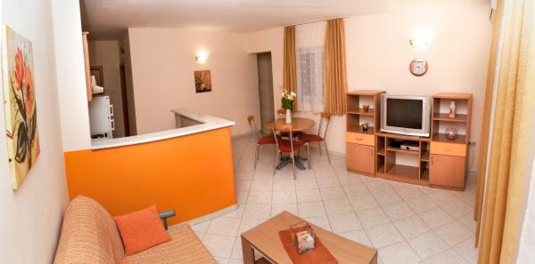 Turistična taksa je vključena v ceno.Komarna je majhno turistično mesto, ki se nahaja v južnem delu Dalmacije. To je le sedem kilometrov od kraja, kjer je reka Neretva izliva v Jadransko morje, 70 kilometrov od hrvaške obale biser Dubrovnik in 120 km od Dioklecijanove Splitu. Mesto je mirno in varno, in zato primerna za družinski oddih in sprostitev. Od Komarna ponuja očarljiv pogled na bližnje polotoku Pelješcu in druge otoke. Prebivalstvo te vasi se ukvarjajo izključno s turizmom, zato ponujajo veliko apartmajev. V Komarna in letovišča, ki so blizu, lahko Radelj, posilstva in Klek okus odlično pripravljenih ribjih jedi, školjke, šunko, sir, vina in oljčnega olja.