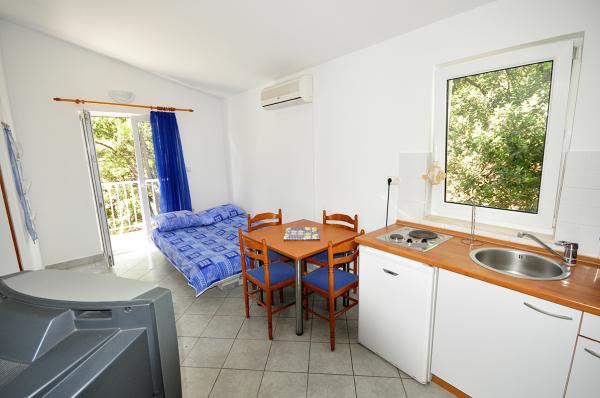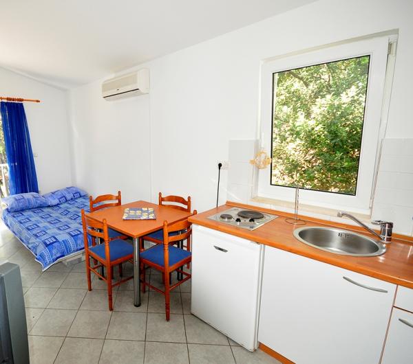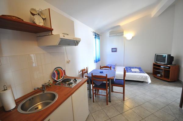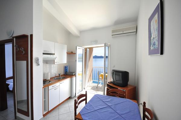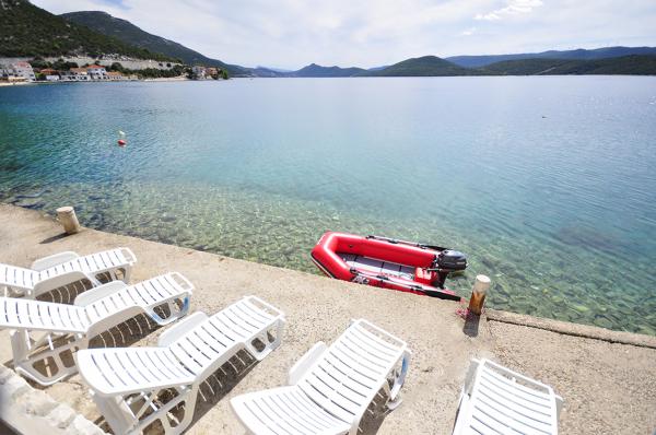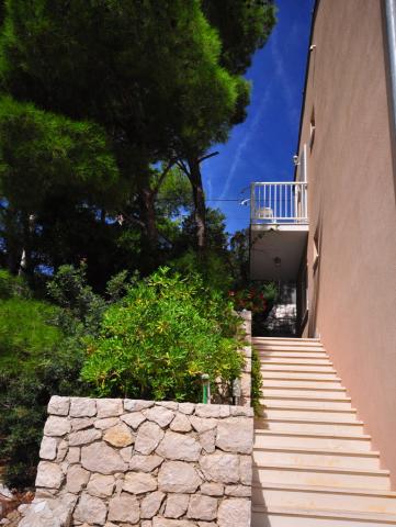 Dobrodošli na Villa Vinko, nastanitev le 10 metrov od morja, kjer lahko uživate v pogledu in poslušanje sproščujoče zvokih morja iz svojega balkona. Naših šest apartmaji so idealni za skupine ljudi, pare in družine z otroki in tiste, ki želijo uživati na pomolu pred vhodom v stanovanje ali v veliki prodnati plaži, ki se nahaja le 60 metrov stran. Stanovanje od 32 m2, imate na voljo popolnoma opremljeno kuhinjo, klimatiziran dnevni prostor z zakonsko posteljo in TV / SAT vključena v ceno, kopalnica s tušem, spalnica z zakonsko posteljo in balkon s pogledom na morje in plažo. Hiša je obdana z borovci in oleandri.