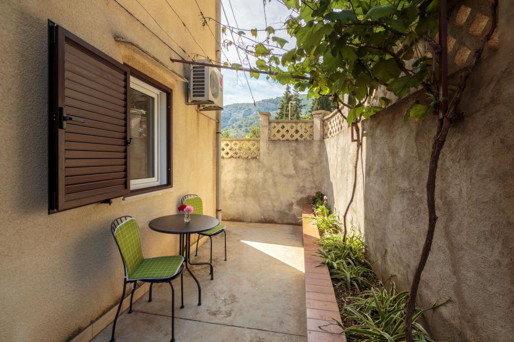 Apartmaji Jordana se nahajajo v hiši, ki je od centra in morja oddaljena približno 100m. Vsak apartma ima svoj vhod, teraso ali ozelenjeno dvorišče. Gostom je na voljo žar na dvorišču. V bližini hiše je javno parkirišče.